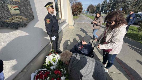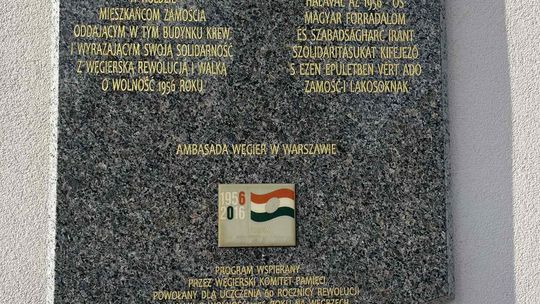 Złożenie kwiatów przy tablicy upamiętniającej dar krwi mieszkańców Zamościa dla Węgrów