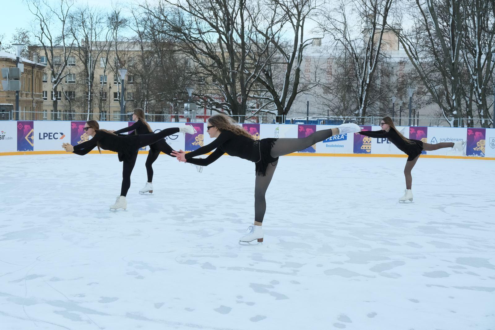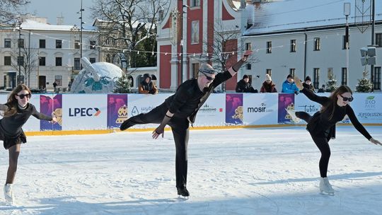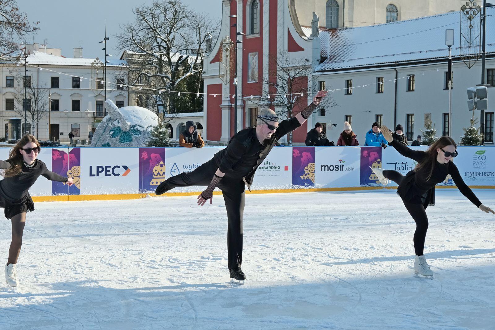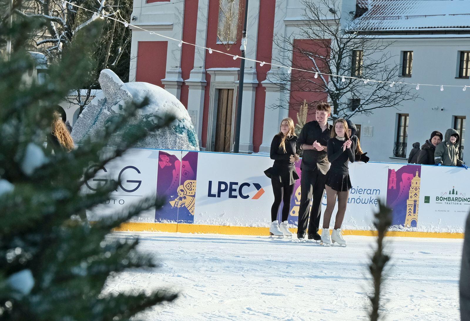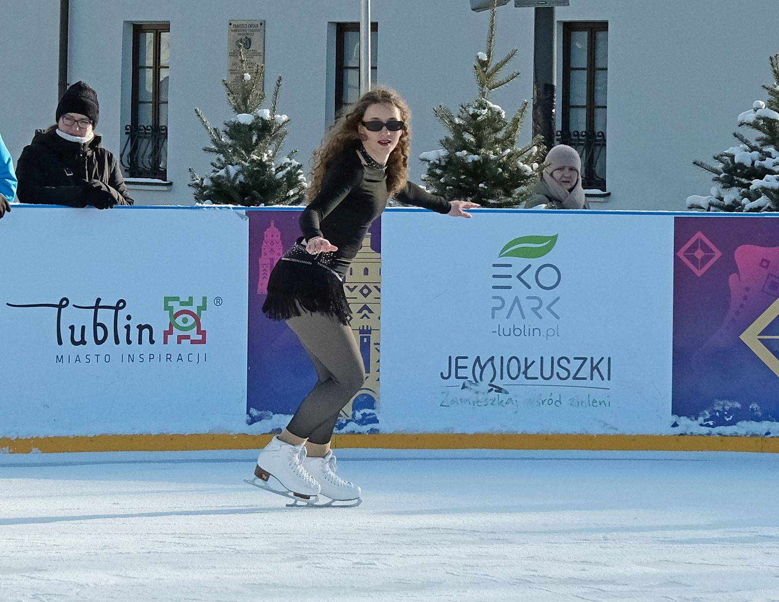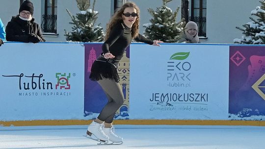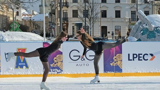 Noworoczny pokaz na lodowisku na Placu Litewskim w wykonaniu łyżwiarzy z UKŁF Salchow Lublin