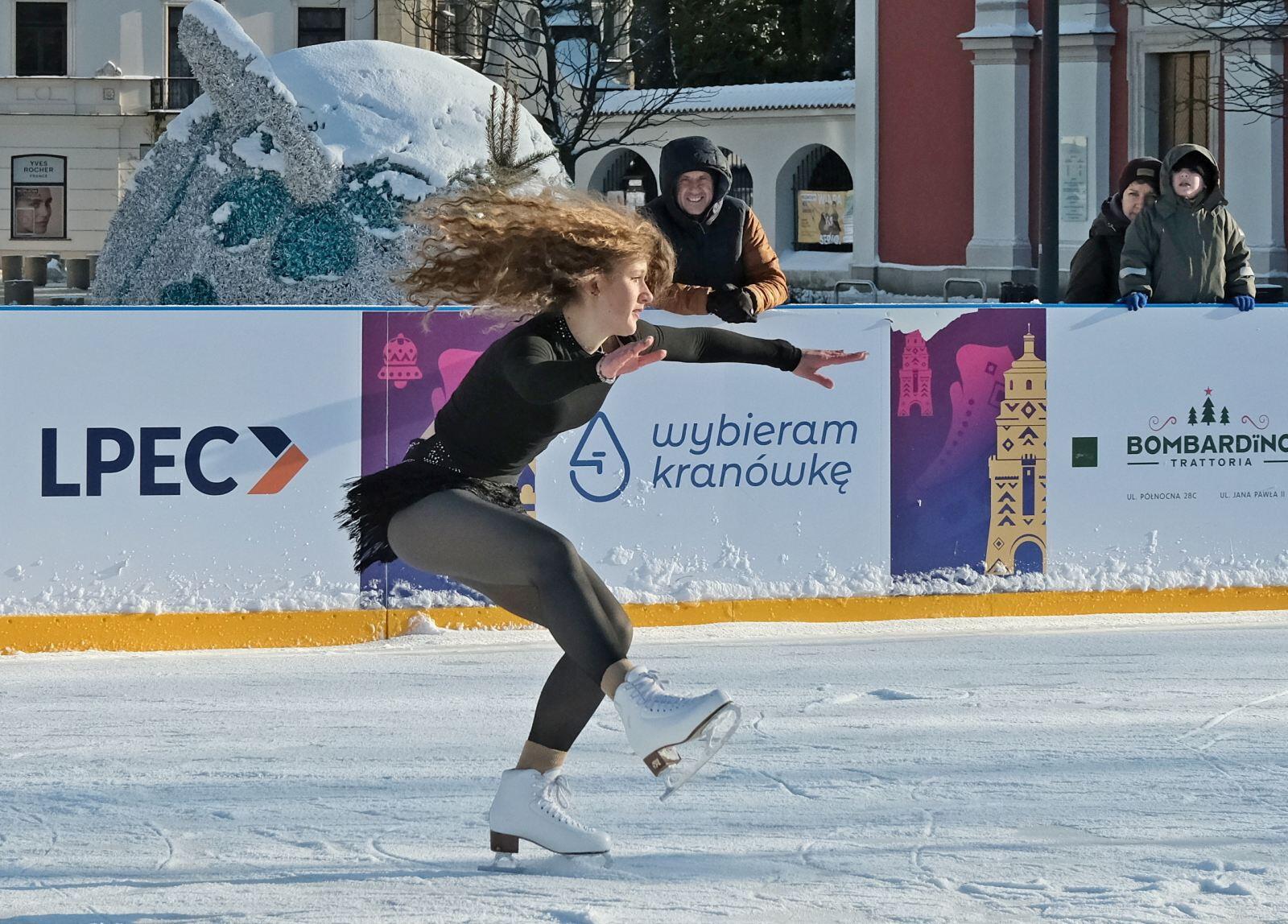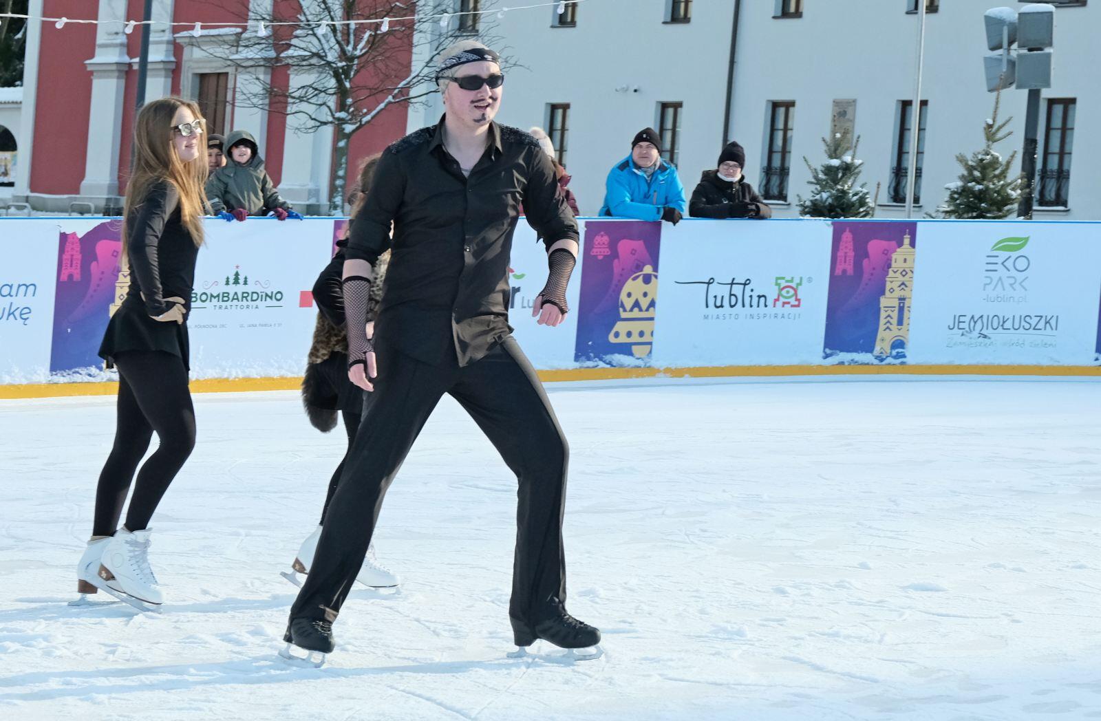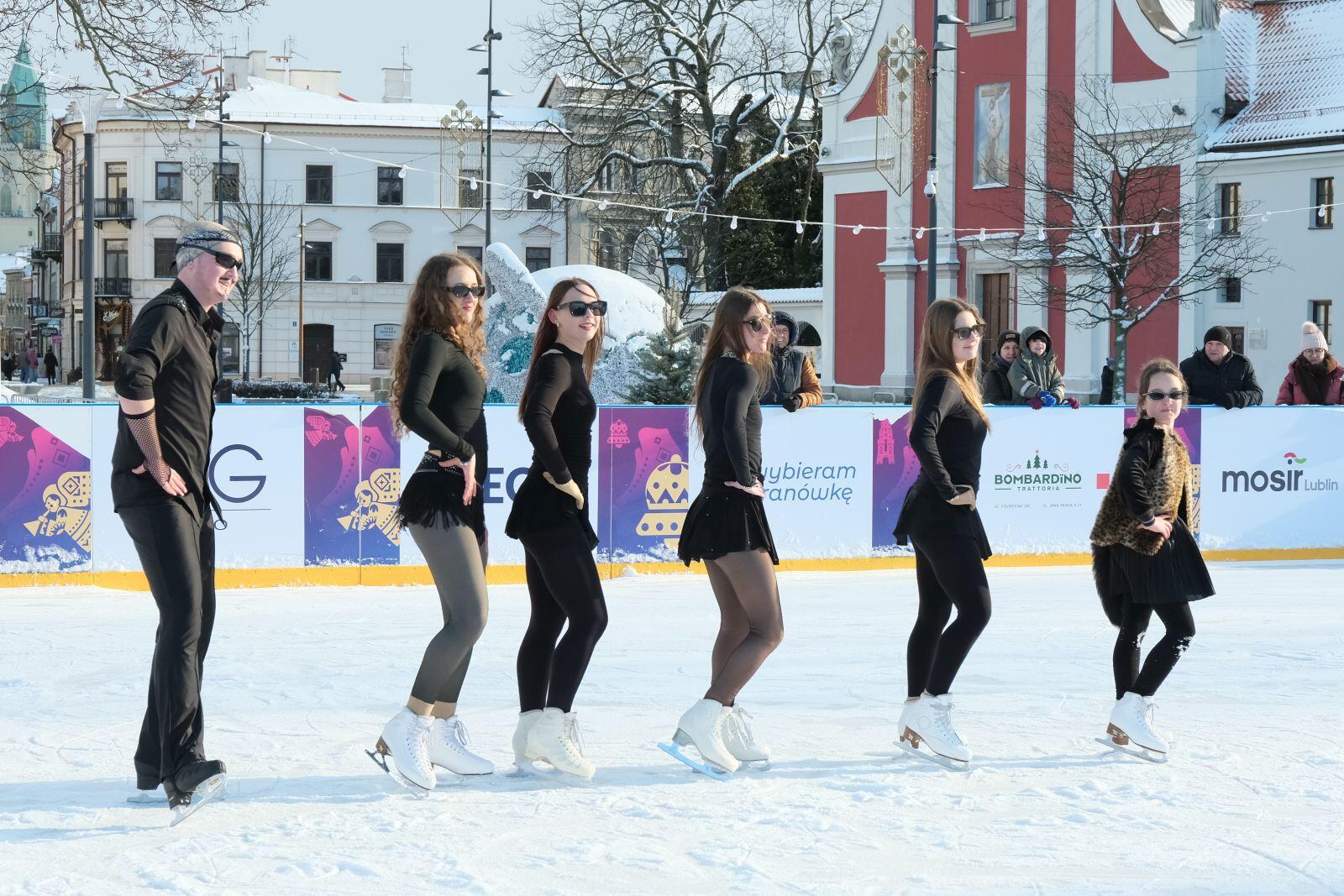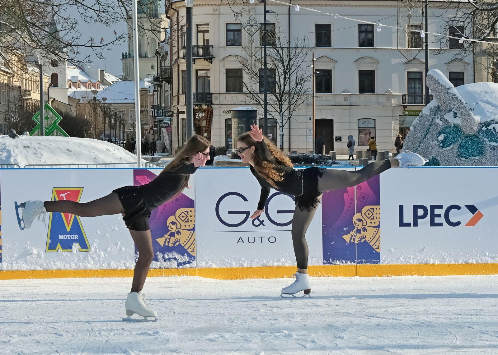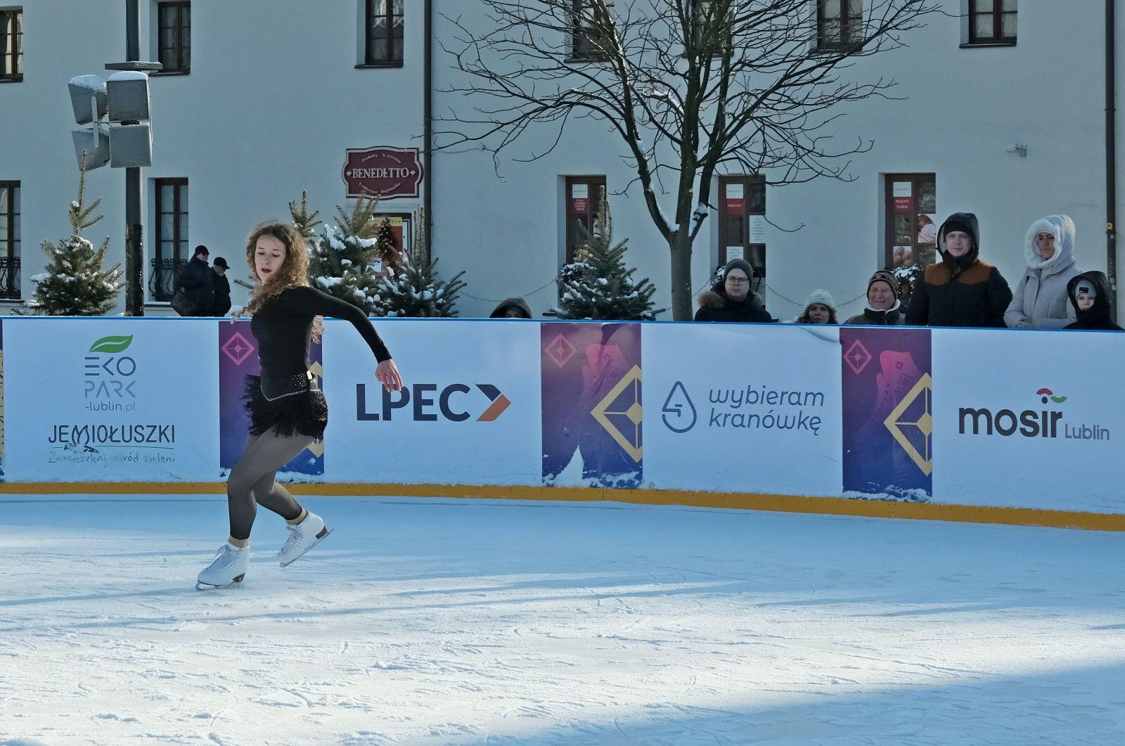 Noworoczny pokaz na lodowisku na Placu Litewskim w wykonaniu łyżwiarzy z UKŁF Salchow Lublin