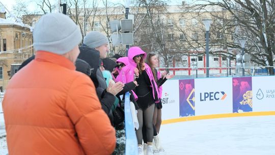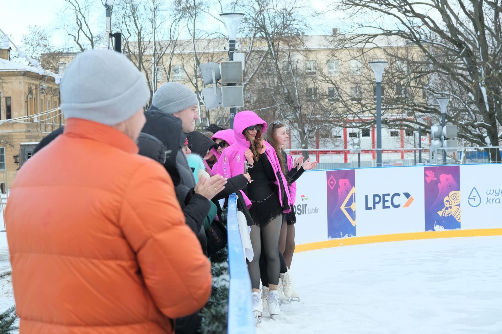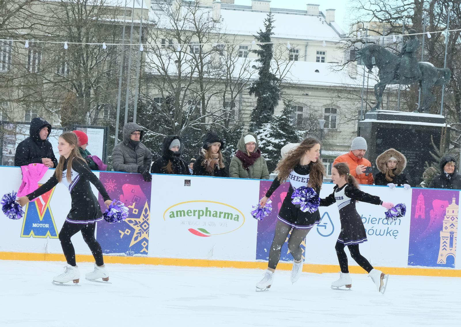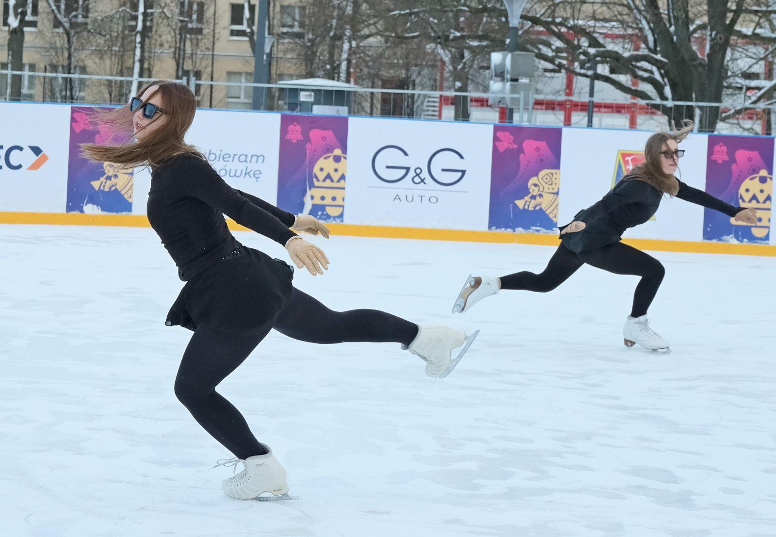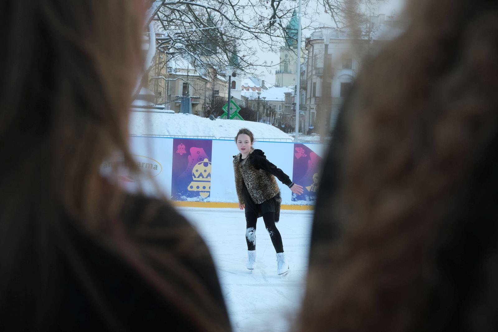 Noworoczny pokaz na lodowisku na Placu Litewskim w wykonaniu łyżwiarzy z UKŁF Salchow Lublin