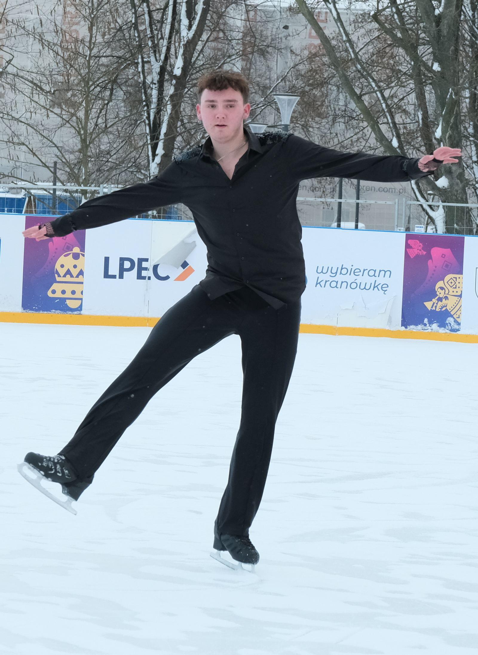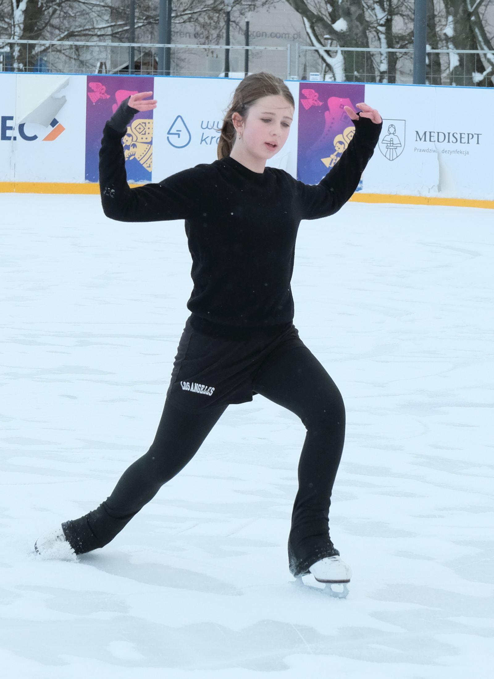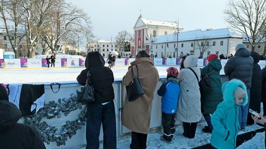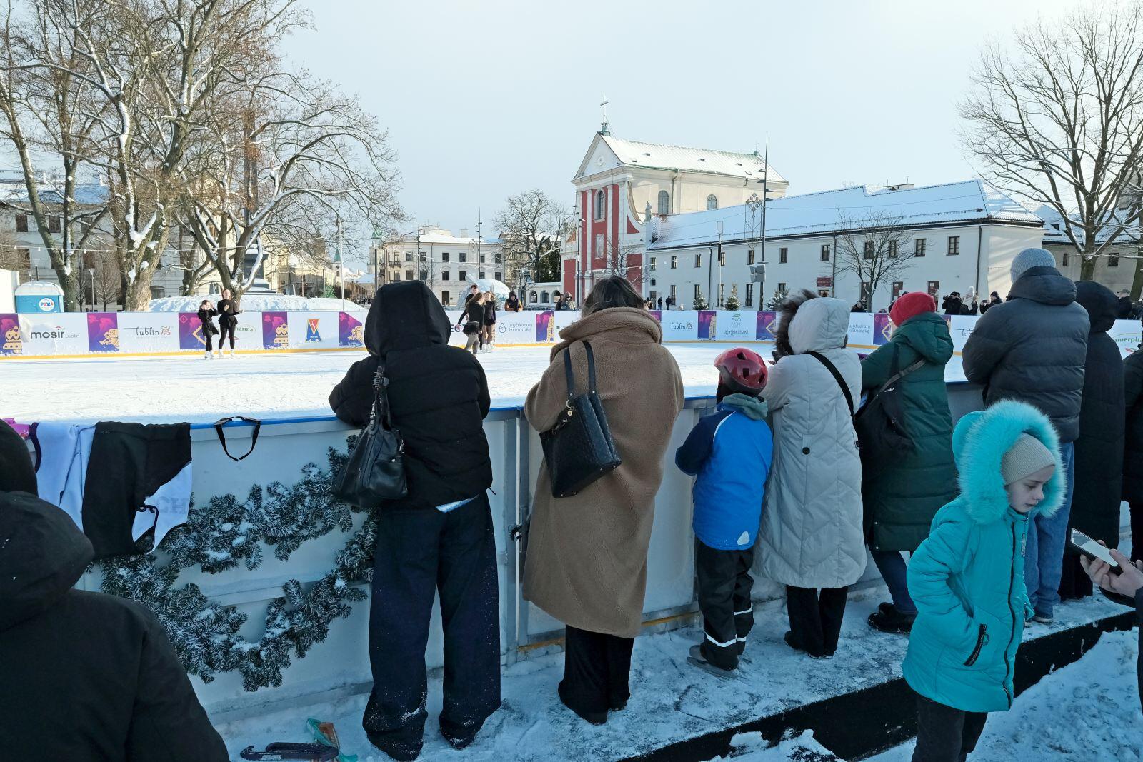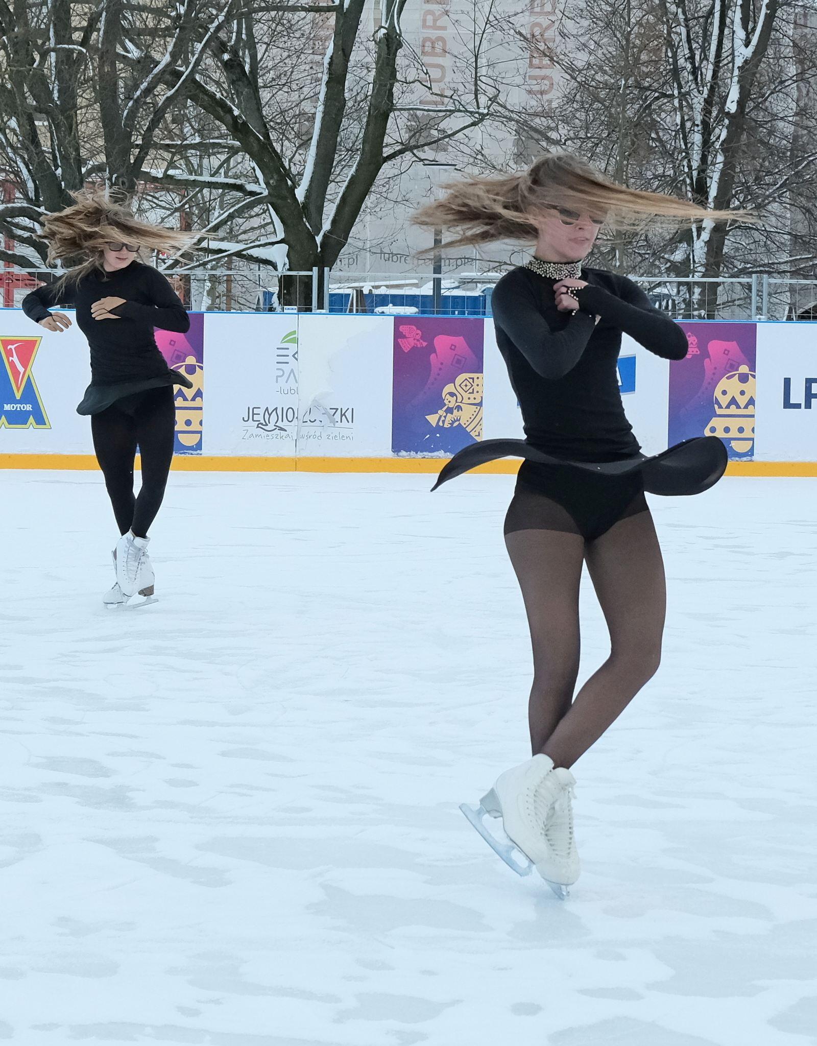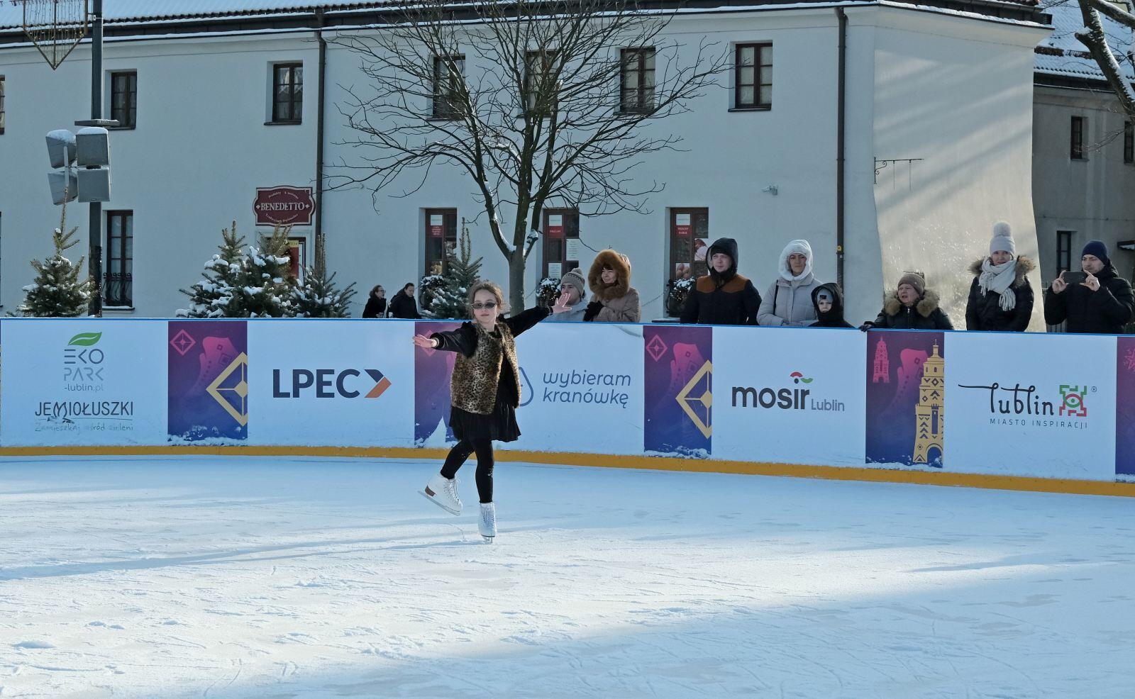 Noworoczny pokaz na lodowisku na Placu Litewskim w wykonaniu łyżwiarzy z UKŁF Salchow Lublin