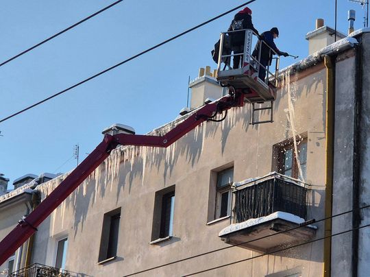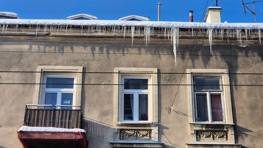 Zwisające nad chodnikami sople zagrażają pieszym