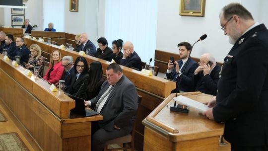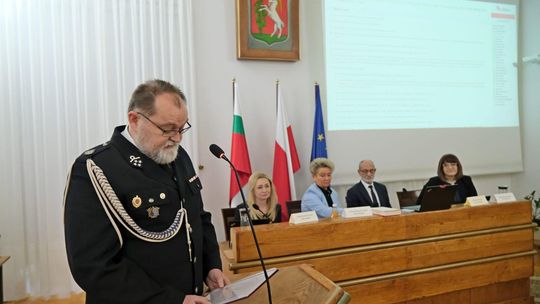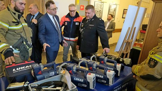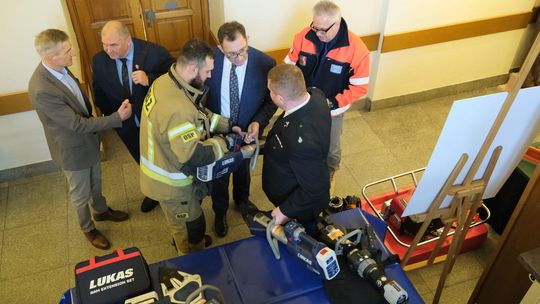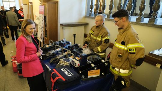Prezentacja nowego sprzętu strażaków ochotników podczas obrad XVII sesji Rady Miasta Lublin