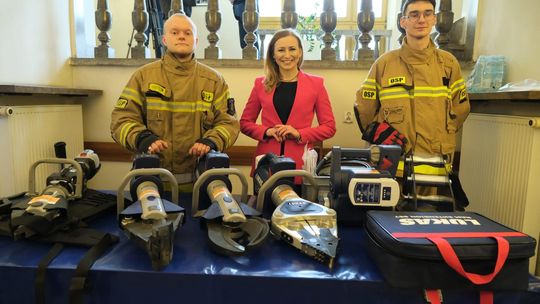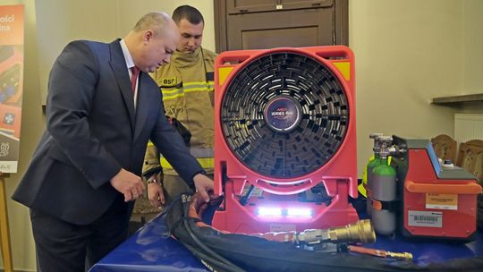 Prezentacja nowego sprzętu strażaków ochotników podczas obra...