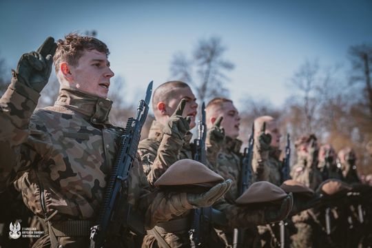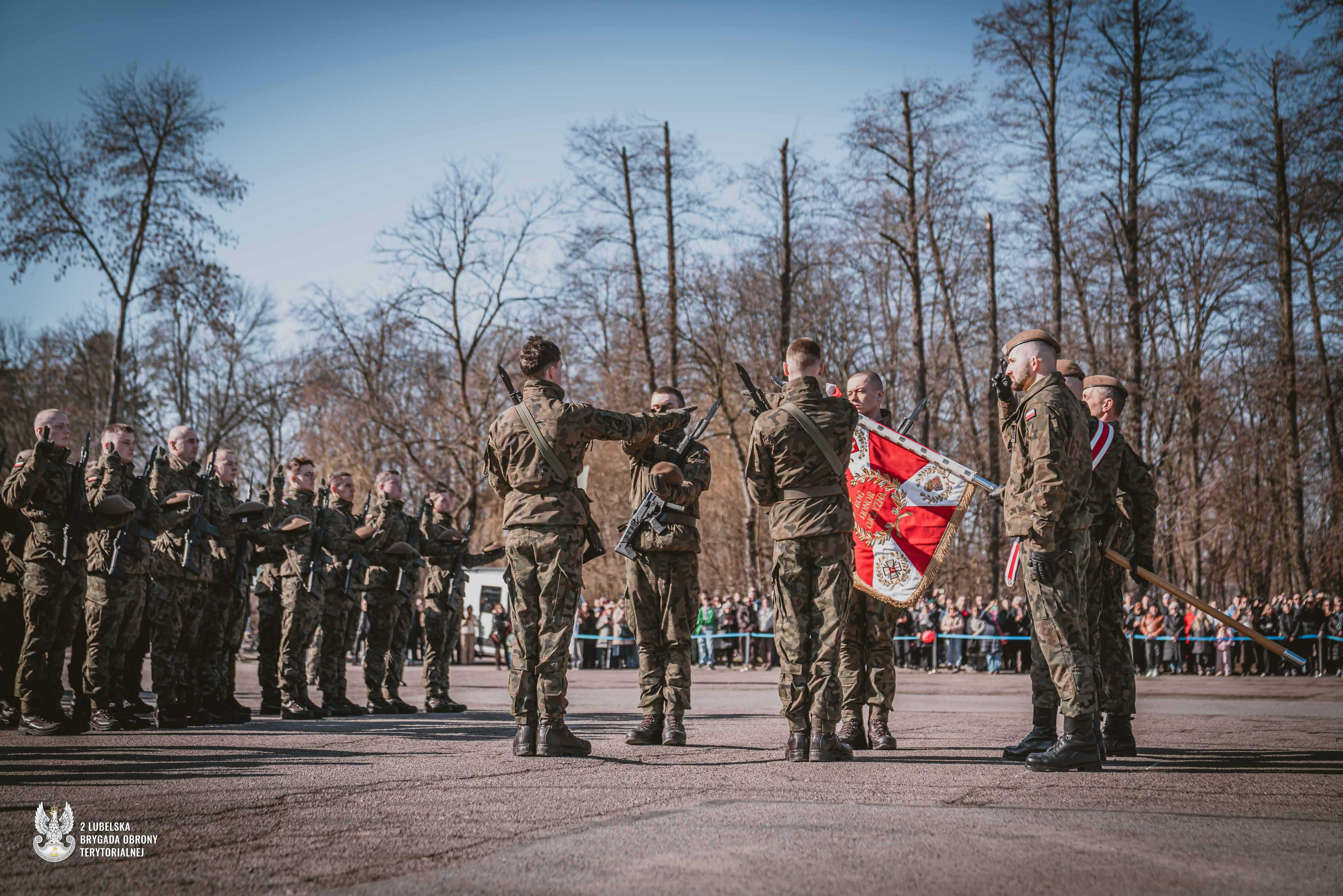 Nowi terytorialsi z województwa lubelskiego składają przysięgę wojskową w Kraśniku.
