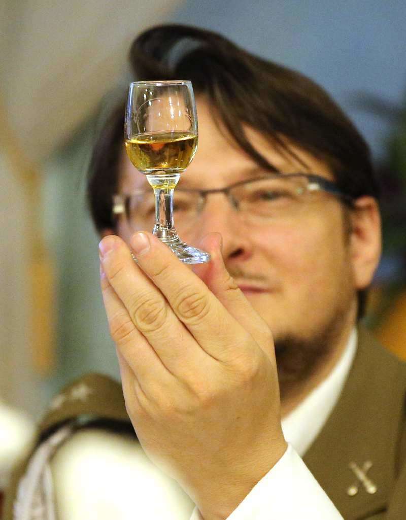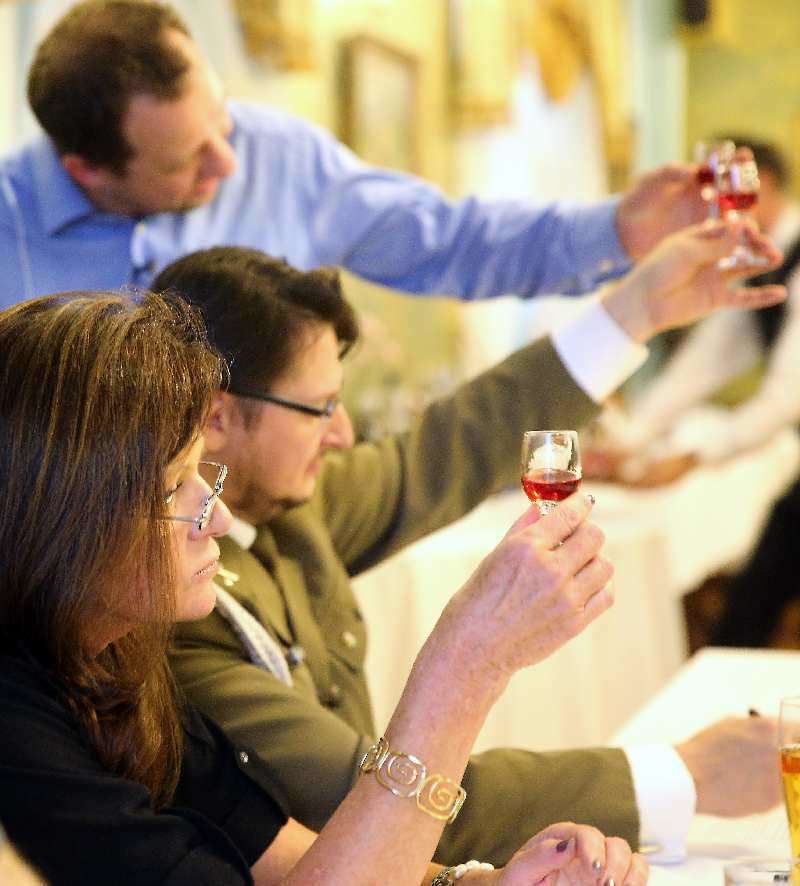 Na VI Ogólnopolskim Konkursie Nalewek Dworu Anna w Jakubowic Konińskich domowe napitki oceniali m.in. prezes Anna Kalata, red. Zofia Czernicka, książę Krzysztof Konstanty Radziwiłł, hrabia Waldemar Kuna-Kwieciński, Grzegorz Skrzecz. Fot. Maciej Kaczanowski