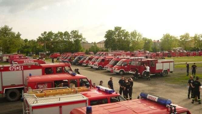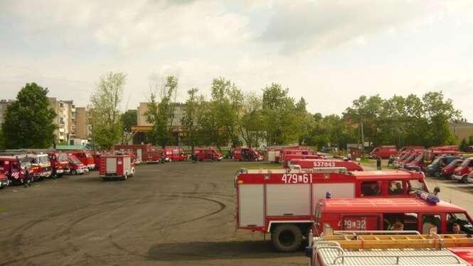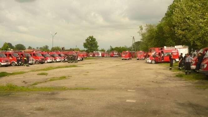 Czwartkowa mobilizacja strazy pozarnej na targowisku w Opolu Lubelskim. Niemal setka pojazdów OSP przyjechalo wraz z zalogami na pomoc naszemu powiatowi z calej Lubelszczyzny.