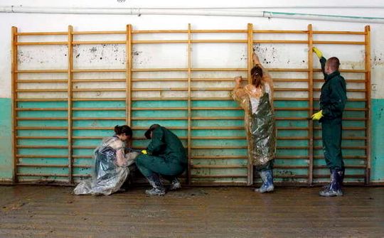 Powodzianie potrzebują pomocy w sprzątaniu.