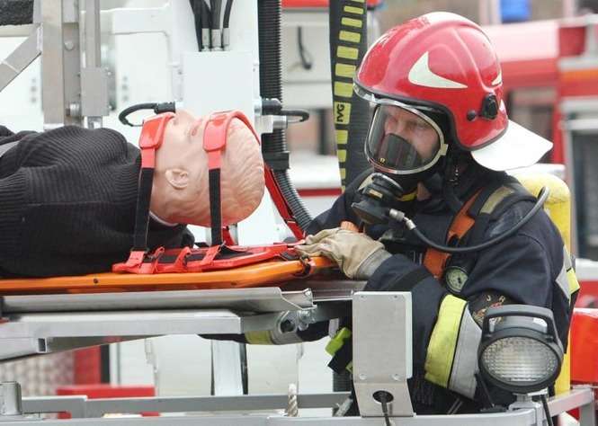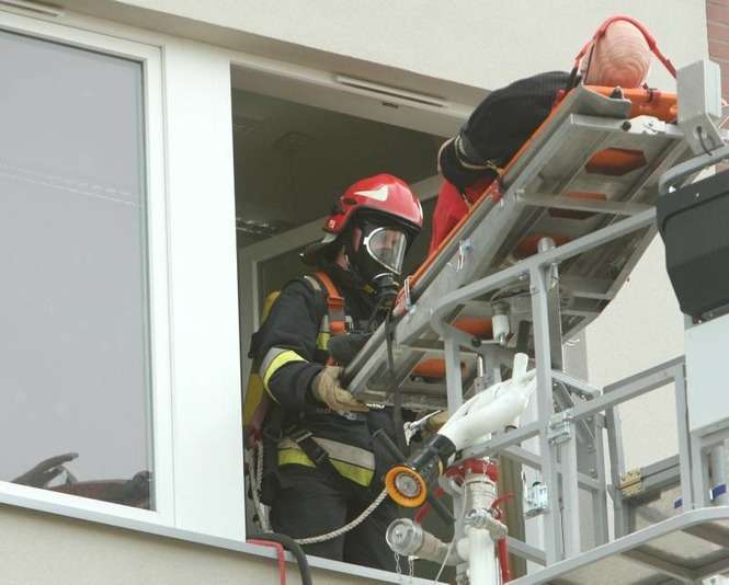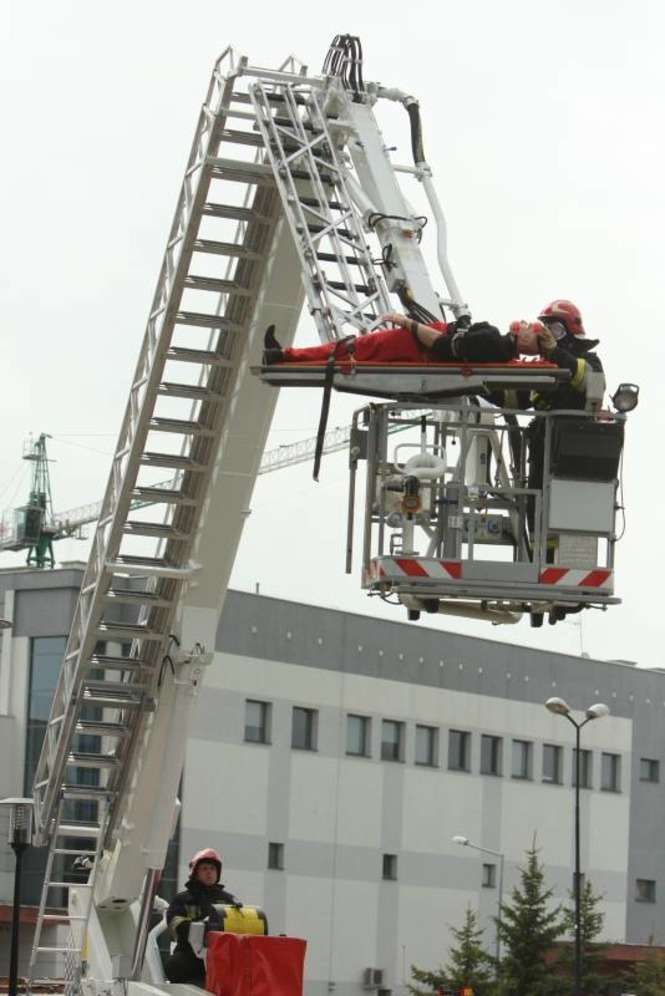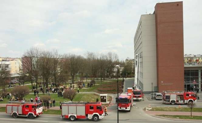 W piątek o godz. 13 w Sądzie Rejonowym Lublin-Wschód wybuchła bomba. Pracownicy zaczęli uciekać, na miejscu pojawia się policja i straż pożarna. Tak wyglądał scenariusz ćwiczeń zgrania służb ratowniczych, przeprowadzonych w Świdniku. Zdjęcia: Maciej Kaczanowski.