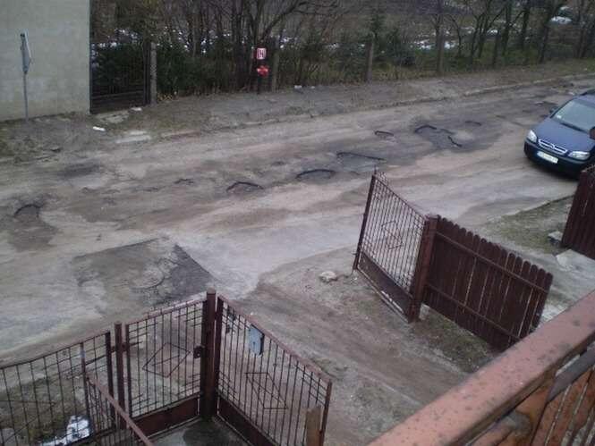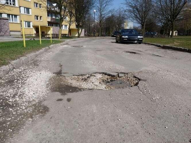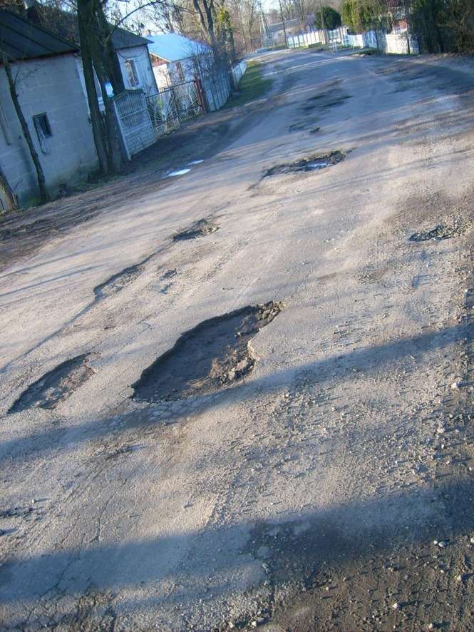Prezentuje dziury w jezdni na ul. Sympatycznej. Niestety pojawily sie one (a wlaściwie wylonily sie spod śniegu) juz duzo wcześniej, niz kilka dni temu.