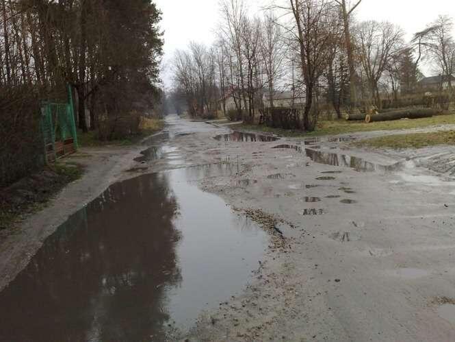 Z brzegu kaluzy jest plytko, ale jadąc środkiem mozna umyc podwozie. Jest to droga dojazdowa do garazy przy ul. Bohaterów Monte Cassino w Zamościu.