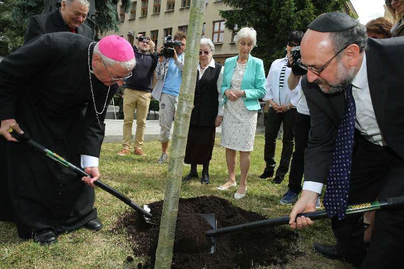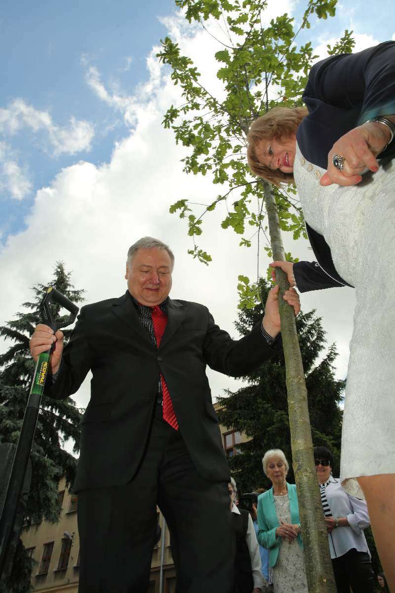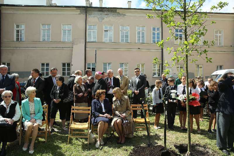 Dąb Jana Karskiego, dokładnie w dzień 100. rocznicy urodzin legendarnego emisariusza, został zasadzony dziś na terenie Szkoły Podstawowej nr 24 w centrum Lublina, obok Pomnika Ofiar Getta Lubelskiego. Fot. Maciej Kaczanowski