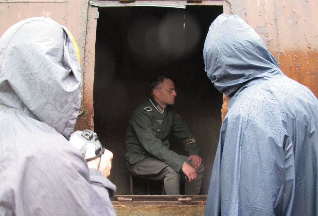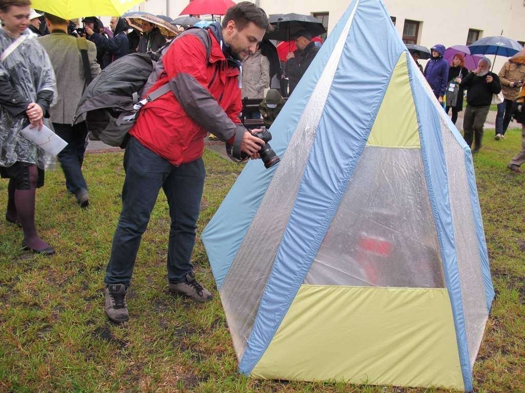 Alevtyna Kakhidze „Choinka. Pamiątka”. Na zdjęciu kurator Open City 2014 - Jerzy Onuch