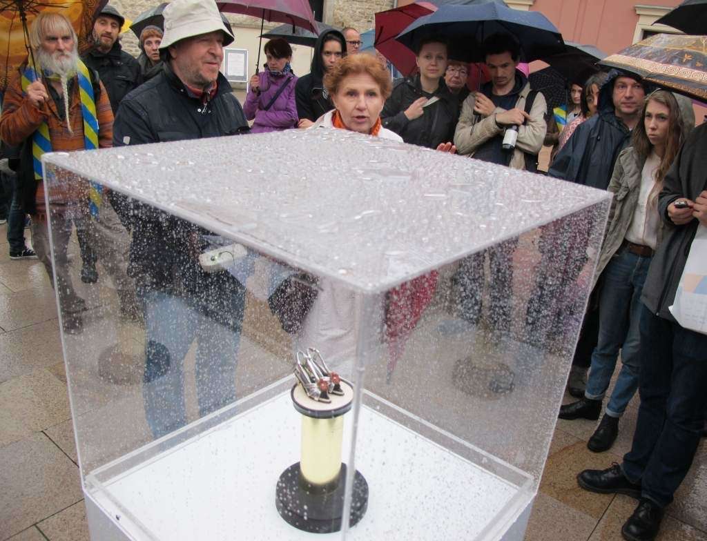 „Forma Światła” Żanny Kadyrowej przylega do ściany Trybunału Koronnego. Jest jedną z prac z cyklu Formy Niewidzialne, którymi artystka odwołuje się do przemiany czegoś, co zwykle jest niewidoczne i efemeryczne w coś ciężkiego i masywnego. Dokumentację czwartkowego wernisażu robili uczestnicy w różnym wieku