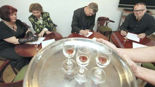 Ojciec Patryk Ostrzyżek z opactwa Benedyktynów w Lubiniu odebrał w Kazimierzu prestiżowy tytuł Mistrza Polskich Nalewek z Akcyzą. Mistrzem Polskich Nalewek Domowych został Hieronim Błażejak z Torunia. Zdjęcia: Maciej Kaczanowski.