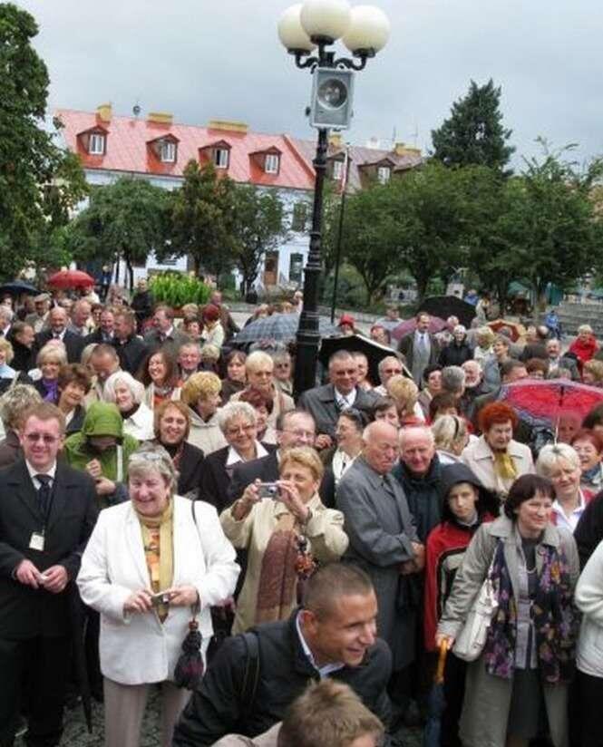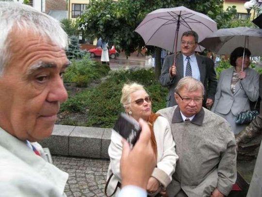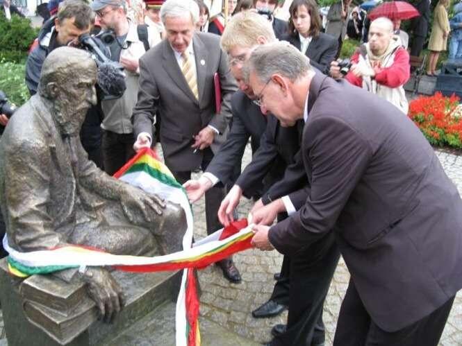 Tlumy absolwentów przybyly by podziwiac uroczyste odslanianie pomnika-laweczki Józefa Ignacego Kraszewskiego na pl. Wolności.