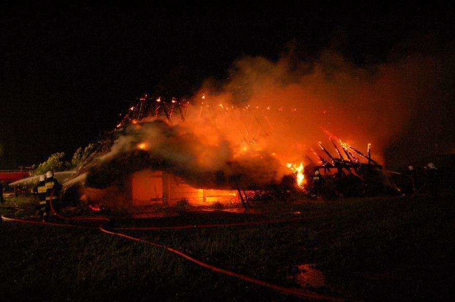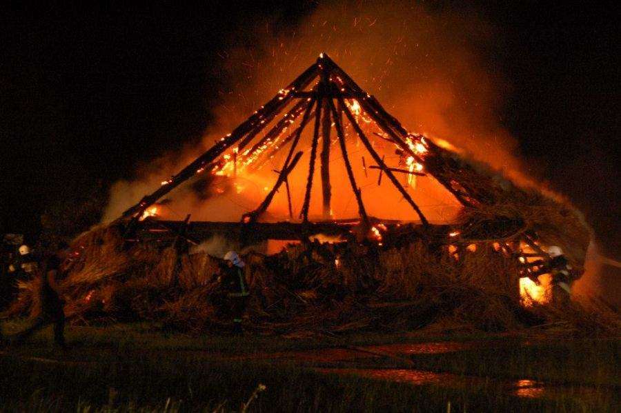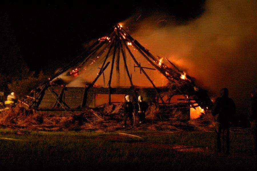 Pożar chaty w Wiosce Gotów w Masłomęczu