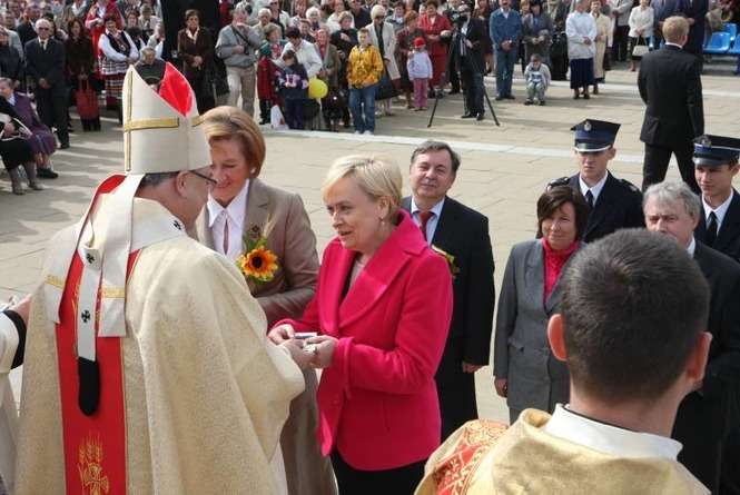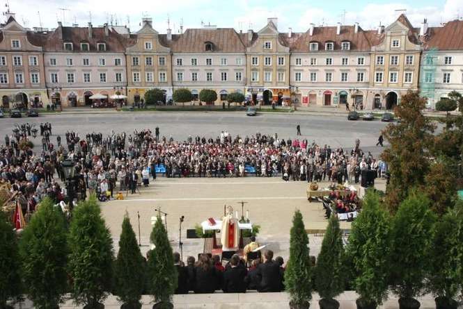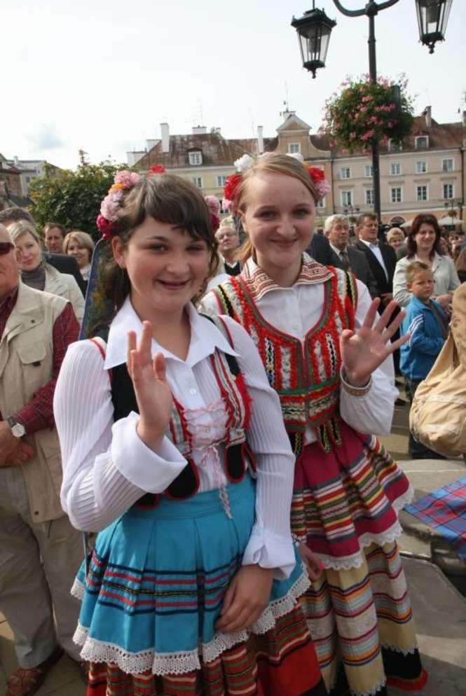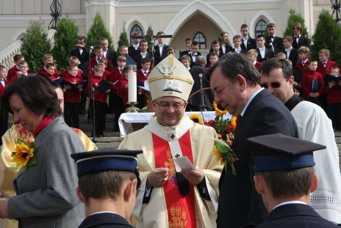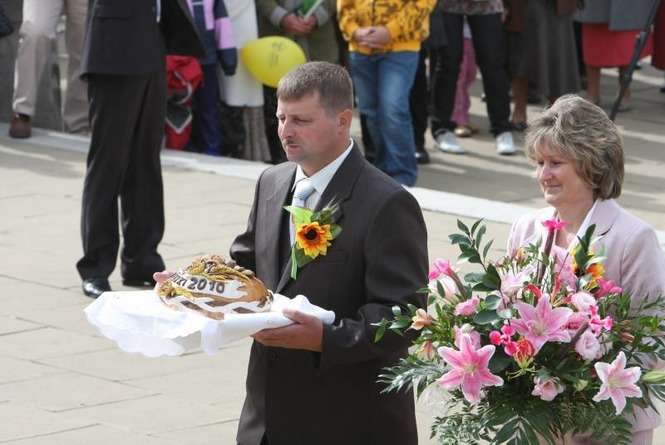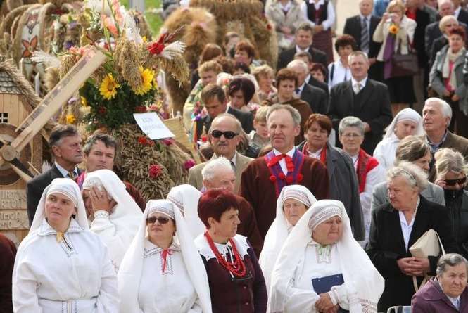 Impreza zaczęła się o 10.30 ustawieniem wieńców dożynkowych i ogłoszeniem konkursu wieńcowego. Potem odbyła się msza dziękczynna za zbiory. Mieszkańcy z radością oglądali barwne wieńce niesione przez gospodarzy. Zdjęcia: Maciej Kaczanowski.