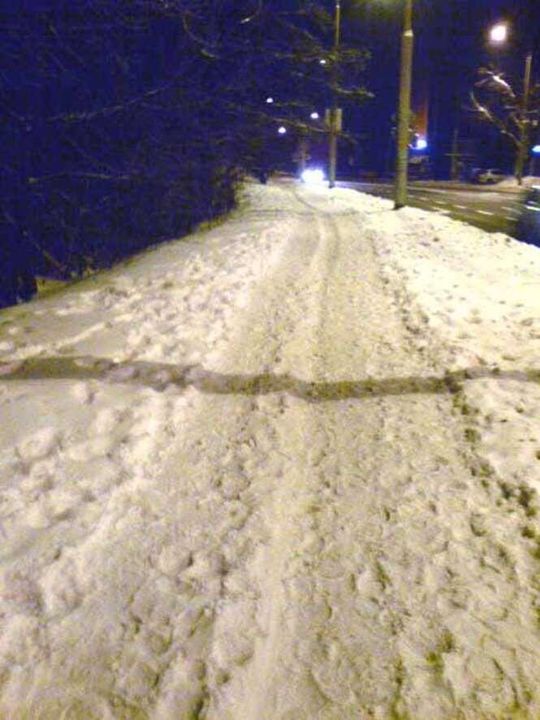 Na zdjeciach ulica Prusa. Nie tknieta lopatą od początku zimy, praktycznie na calej dlugości. Na chodniku nie tylko śnieg ale takze lód. Podobnie wygląda ulica Biernackiego. Obie nie dalej niz 10 minut drogi od Ratusza. Wstyd! - pisze Internauta