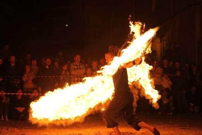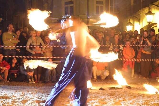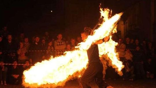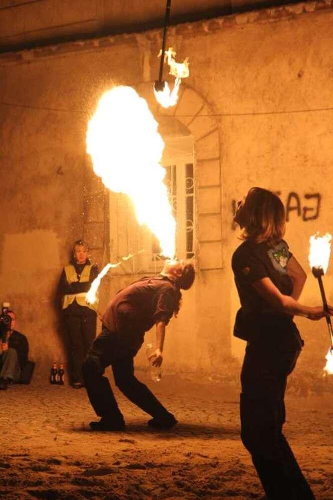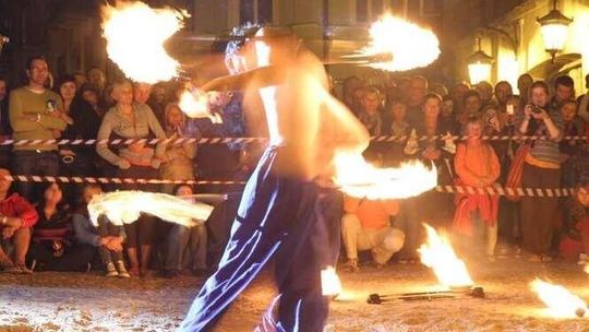 Trwa w Lublinie Carnaval Sztuk-Mistrzów. Popisy Fire Open Stage na pl. Rybnym. Zdjęcia: Maciej Kaczanowski.