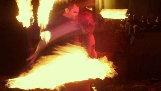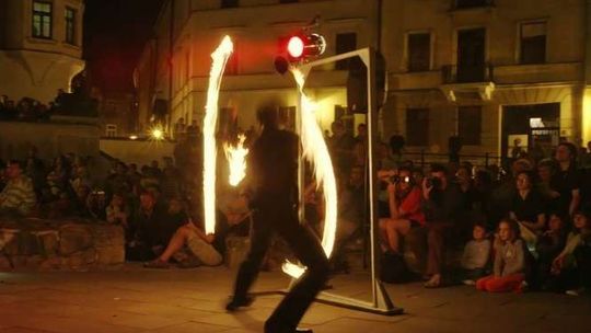 Na placu Po Farze będą się odbywały pokazy uliczne. Petra Rouchoue pokazała walking show \"La Calva Clavel”, Johan Swartvagher - \"No comprendo“ a Sigillium lgnis fireshow p.t. \" Za pięć dwunasta\". Zdjęcia: Maciej Kaczanowski.