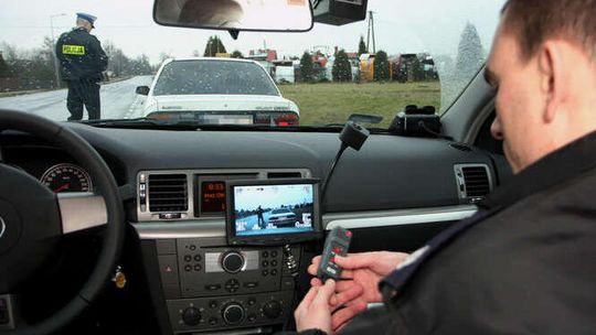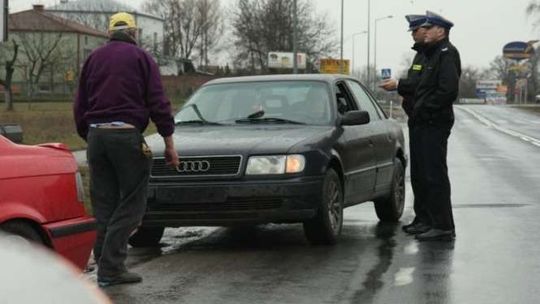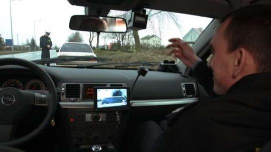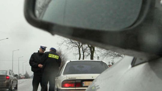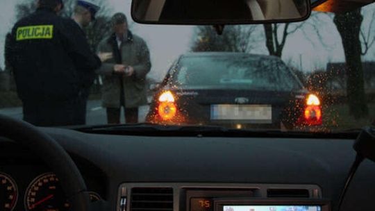 Policjanci zatrzymują kierowce mitsubishi. Przez Gluszczyzne i Czerniejów kierowca jechal 122 na godzine.