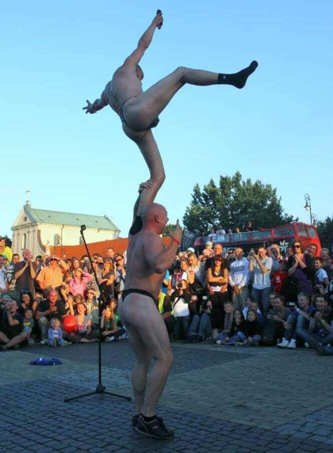 Trwa w Lublinie Carnaval Sztuk-Mistrzów. Występ \"Skate Naked\" na pl. Litewskim. Zdjęcia: Maciej Kaczanowski.