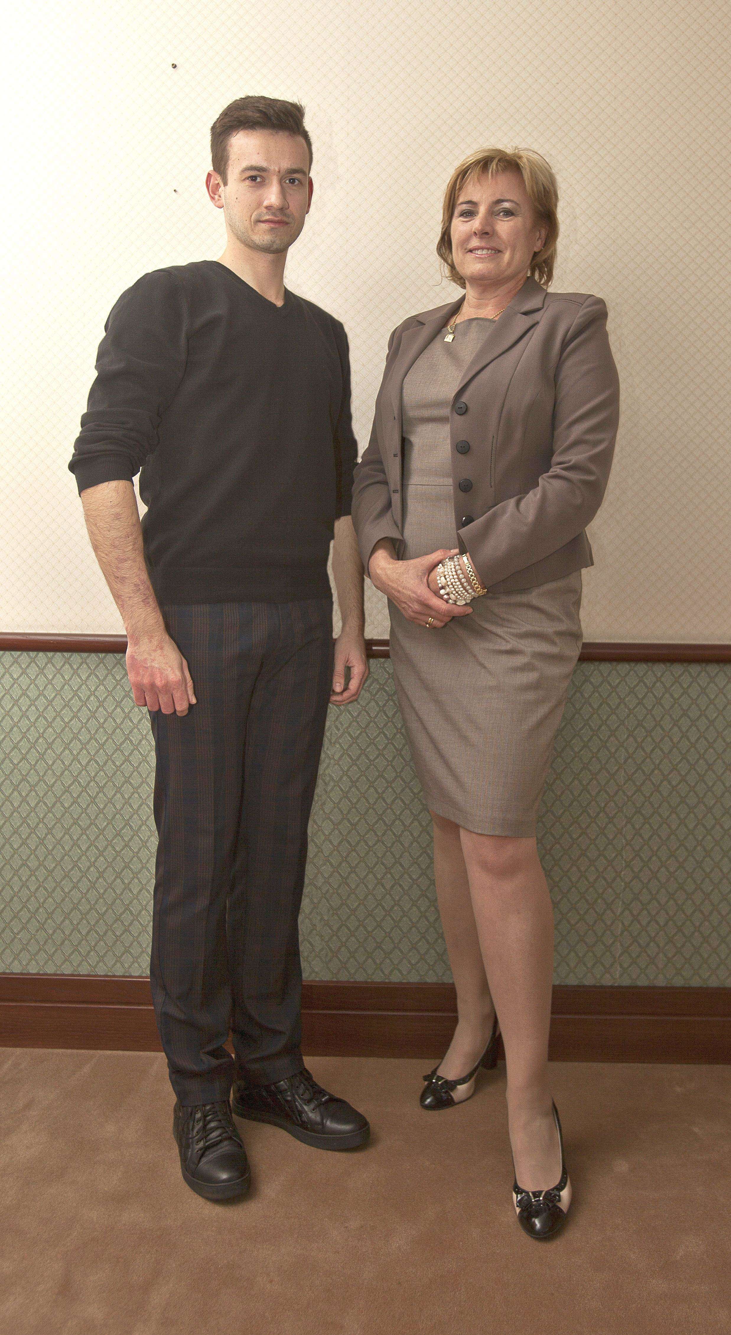 Wanda Garbacka, dyrektor Przedstawicielstwa Towarzystwa Ubezpieczeń UNIQA i Paweł Żytko, tancerz Formacji GAMZA