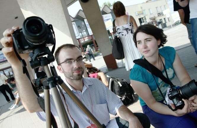 Uczestnicy projektu Medialab pt. \"Jeden dzień.\" dokumentują życie Lublina. Zdjęcia i nagrania rozmów z przechodniami utworzą medialny wizerunek miasta. Fot. Maciej Kaczanowski.