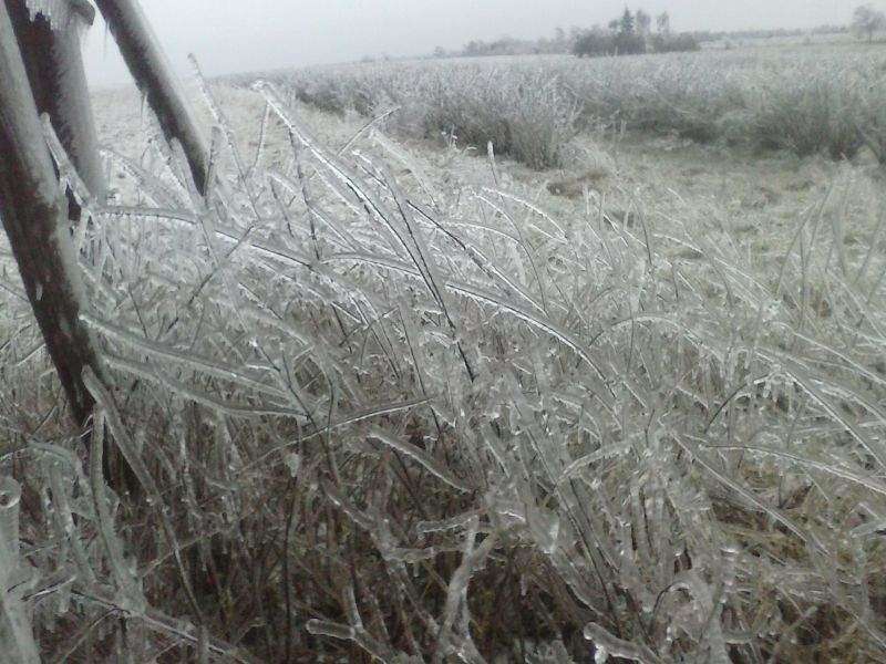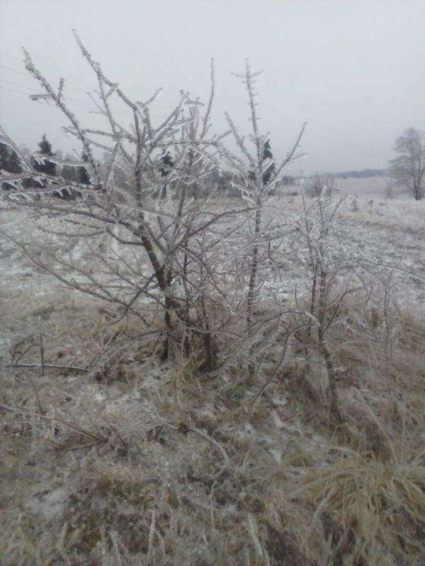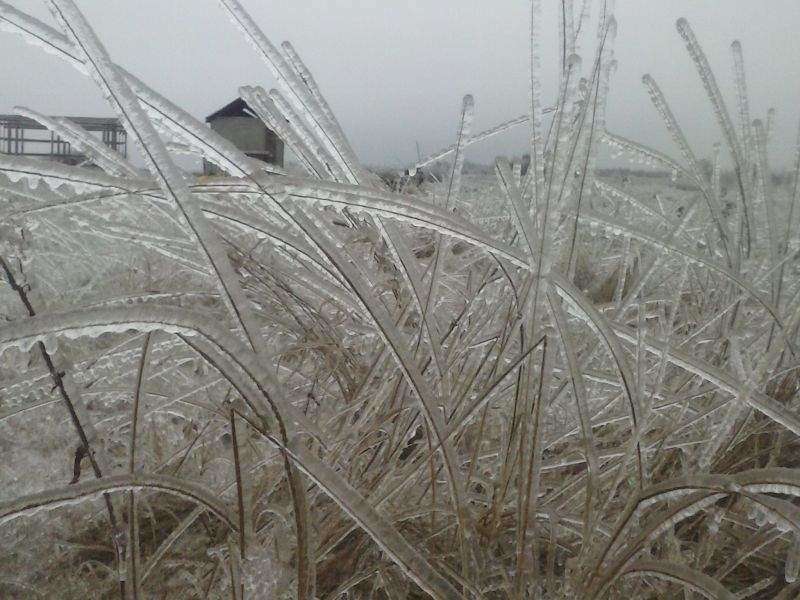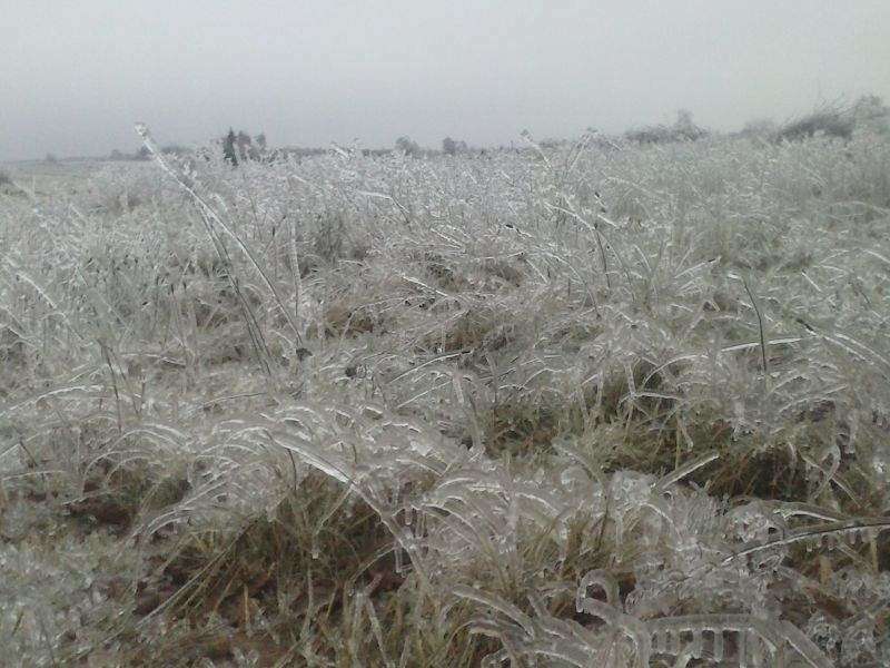 Grabowica (gmina Susiec): Łąka jak ze szkła po opadach marznącego deszczu