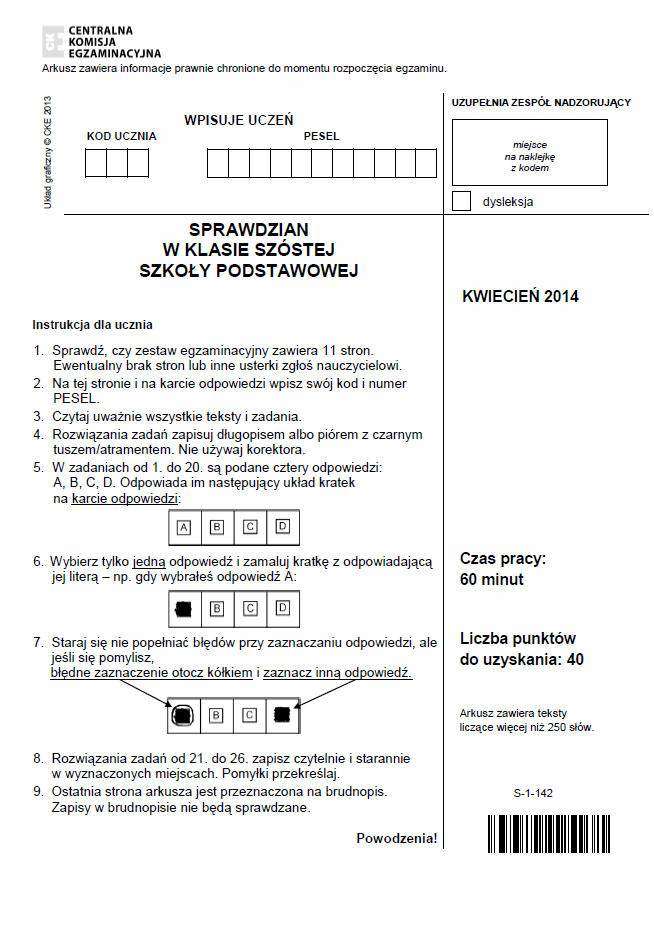 Sprawdzian szóstoklasisty 2014. TEST, arkusze, odpowiedzi