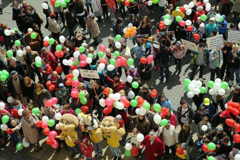 Korowód międzypokoleniowy przeszedł ul. Królewską na pl. Łokietka. Fot. Maciej Kaczanowski