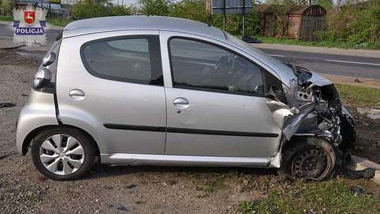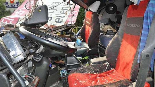 Samochód ciężarowy zatrzymał się dopiero na konstrukcji reklamowej