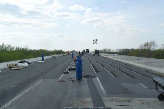 Dobiega końca budowa mostu na Wiśle w Kamieniu. Na konstrukcji pojawiła się już nawierzchnia asfaltowa. Fot. Energopol