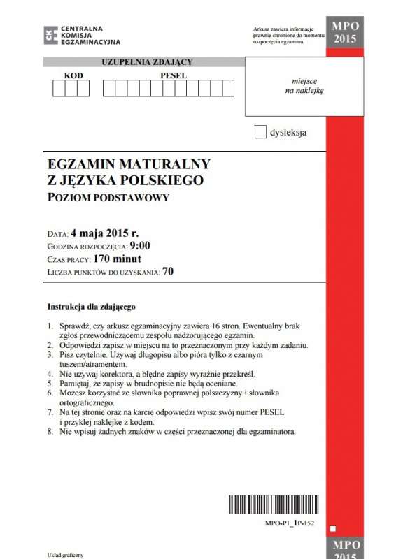 Matura 2015 POLSKI - ARKUSZ (nowa matura)