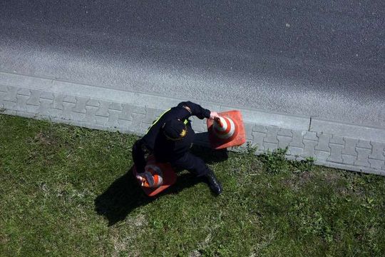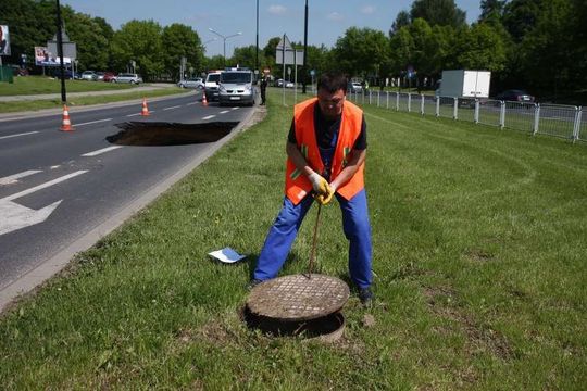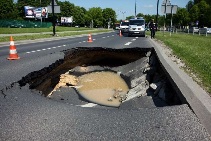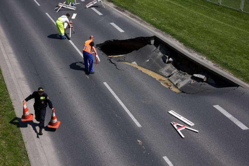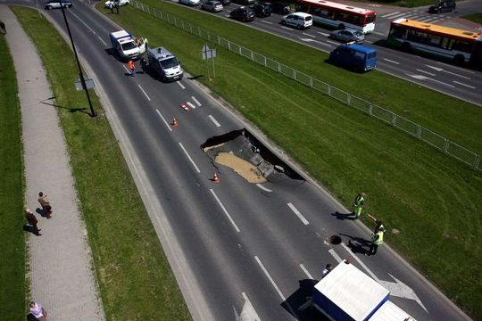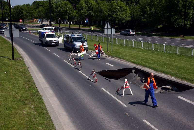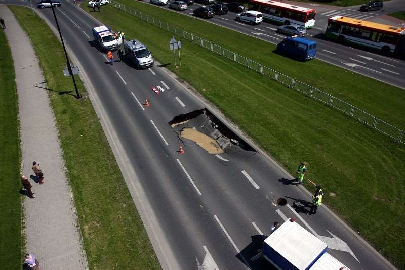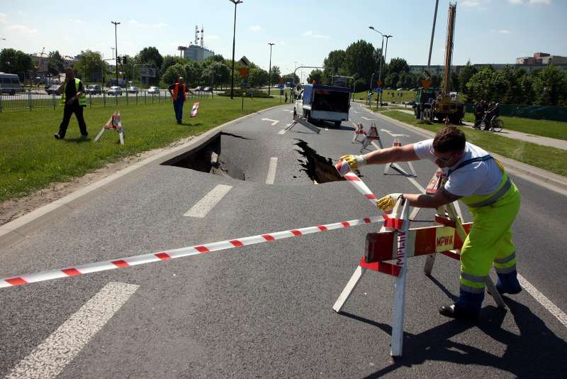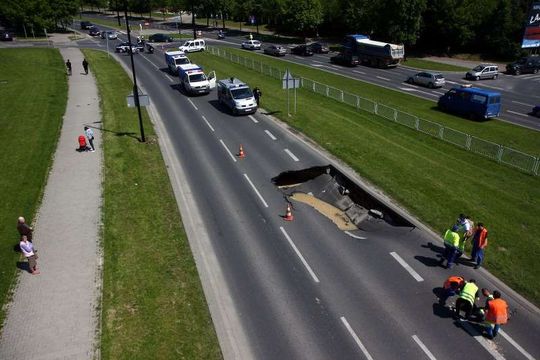 Zapadnięta jezdnia na Czechowie