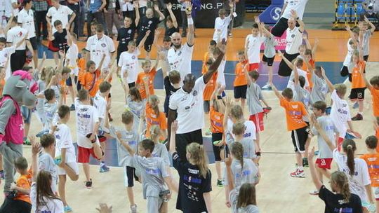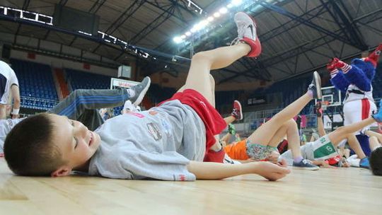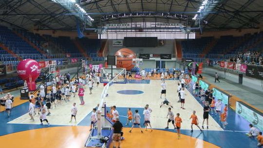 Podczas Marcin Gortat Camp w Lublinie odbyły się treningi dla dzieci w wieku 9-13 lat, klinika Junior NBA dla młodzieży w wieku 14-17 lat oraz turniej koszykówki ulicznej "Streetball z mistrzem". Fot. Maciej Kaczanowski