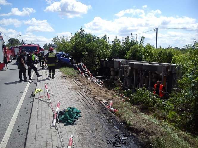 Zderzenie ciężarówki i samochodu osobowego