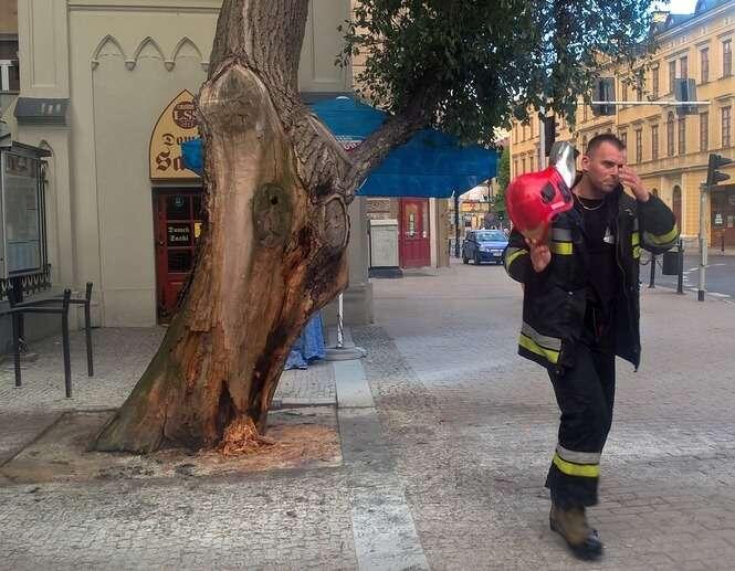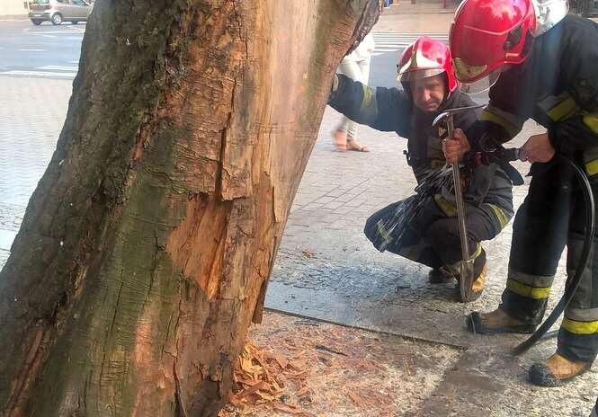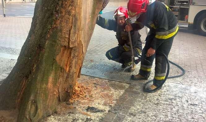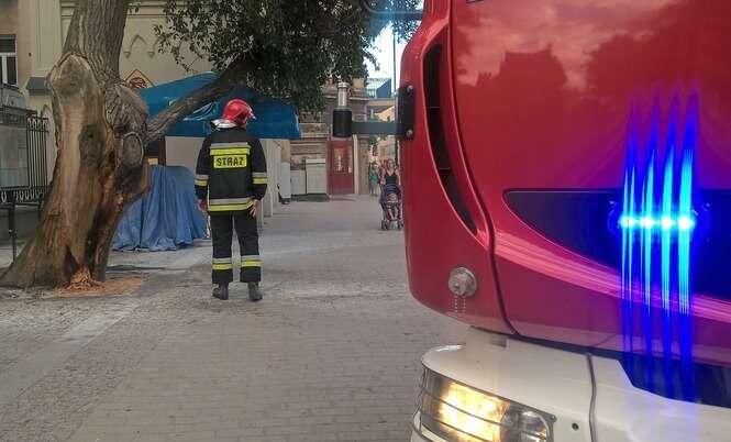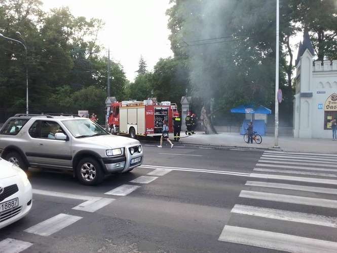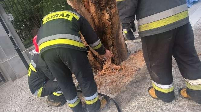 Pożar drzewa przy wejściu do Ogrodu Saskiego