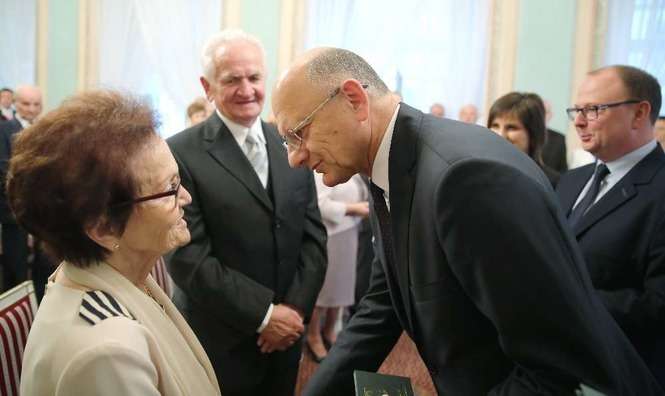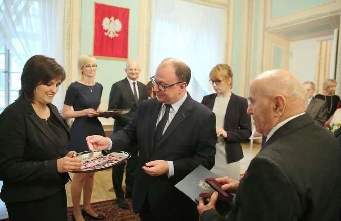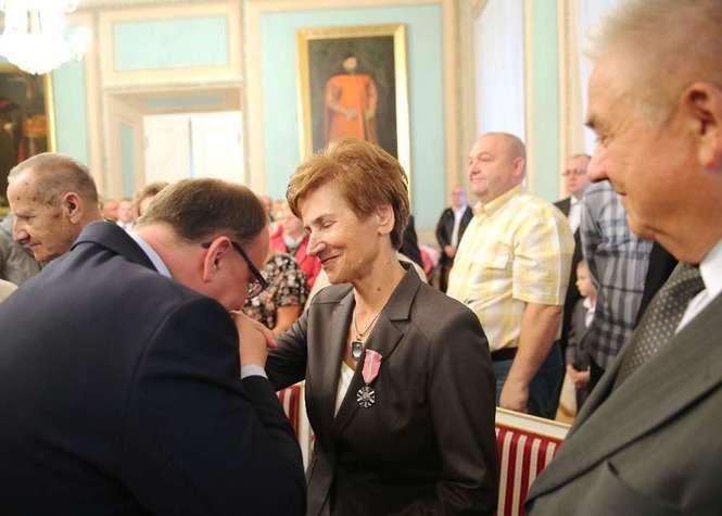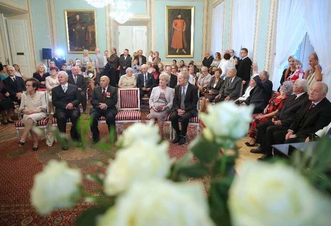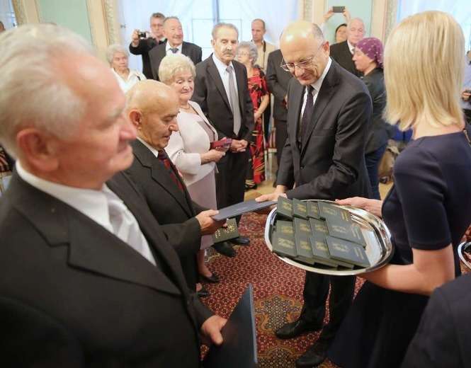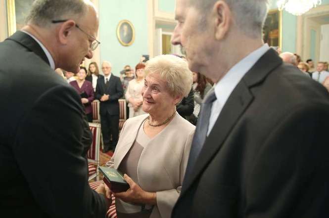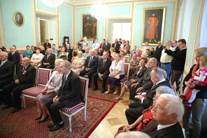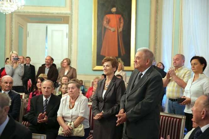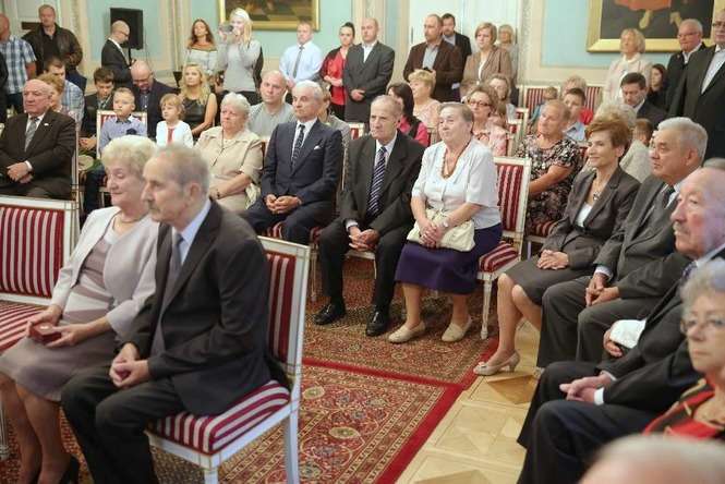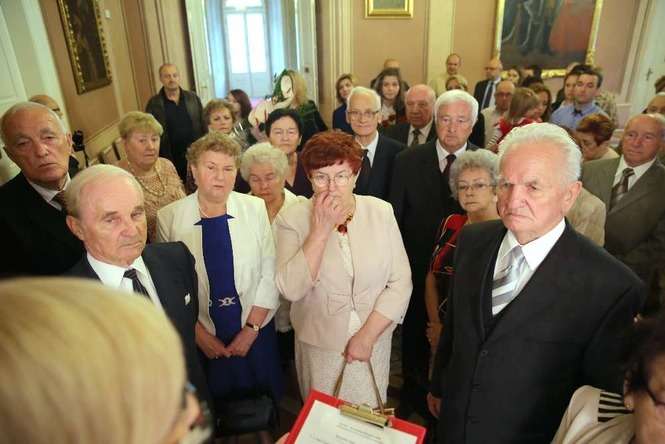Medal za Długoletnie Pożycie Małżeńskie stanowi nagrodę dla osób, które przeżyły co najmniej 50 lat w jednym związku małżeńskim. Na uroczystości lubelskim Trybunale odznaczenie to otrzymało 14 par małżeńskich. Rekordziści są razem od 65 lat. Fot. Maciej Kaczanowski