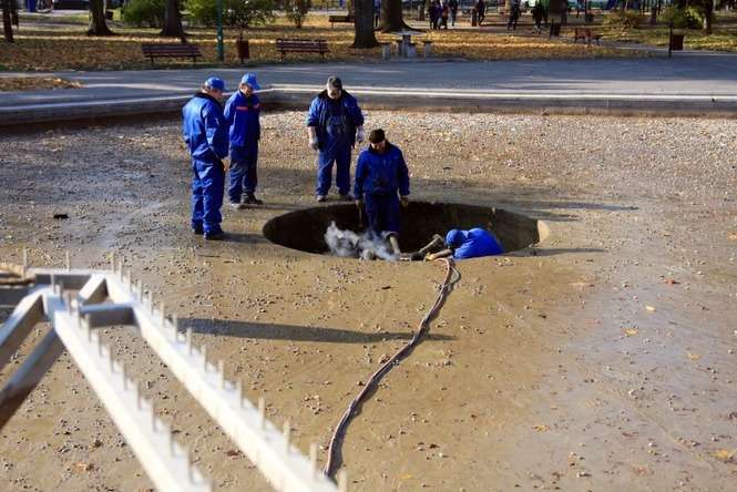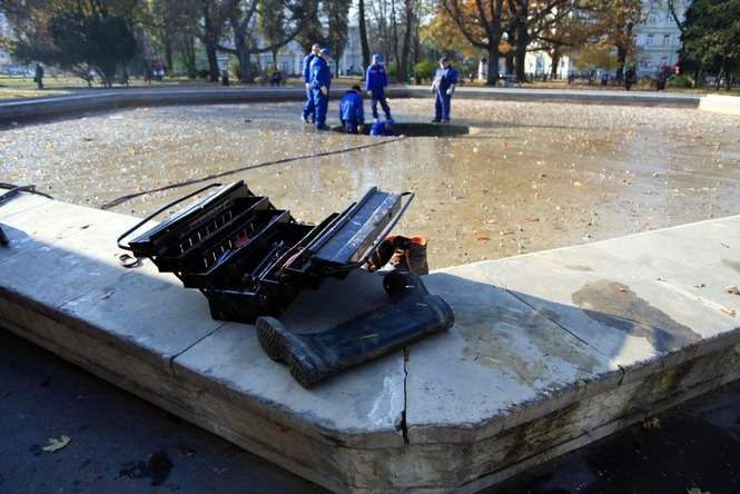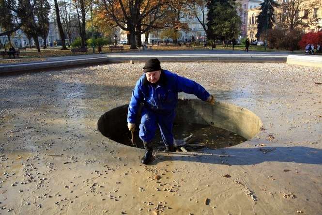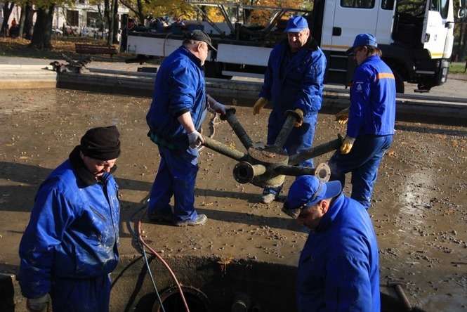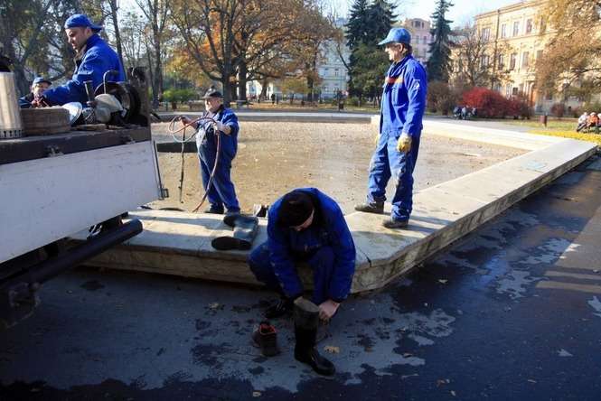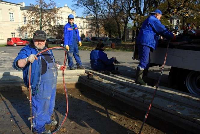 Demontaż fontanny na placu Litewskim