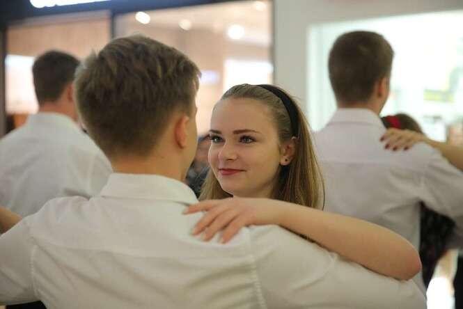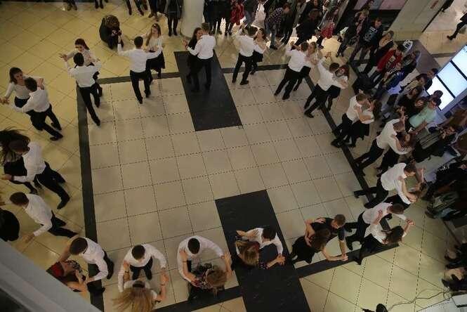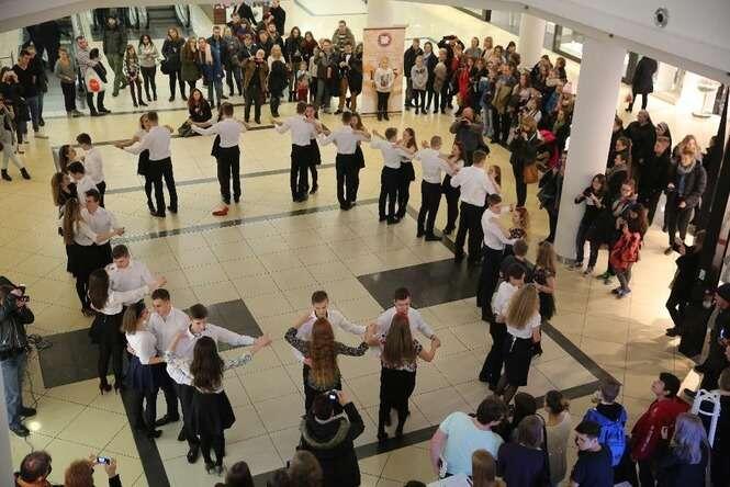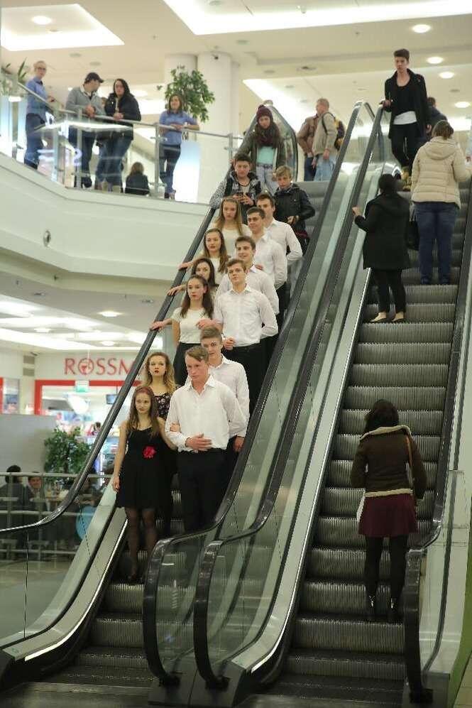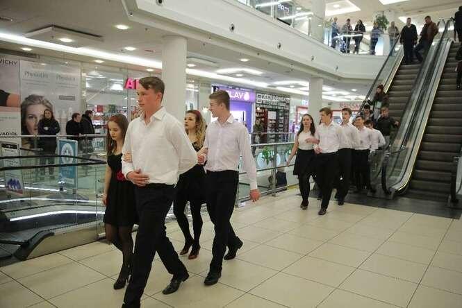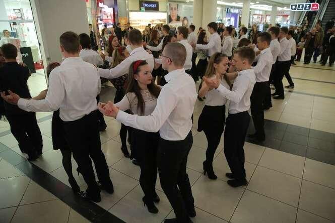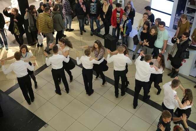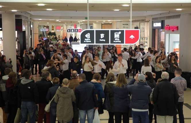 Z okazji 100 - lecia II LO im. Hetmana Jana Zamoyskiego uczniowie w strojach szkolnych z lat 20 - tych zatańczyli walca w Lublin Plaza. Fot. Maciej Kaczanowski