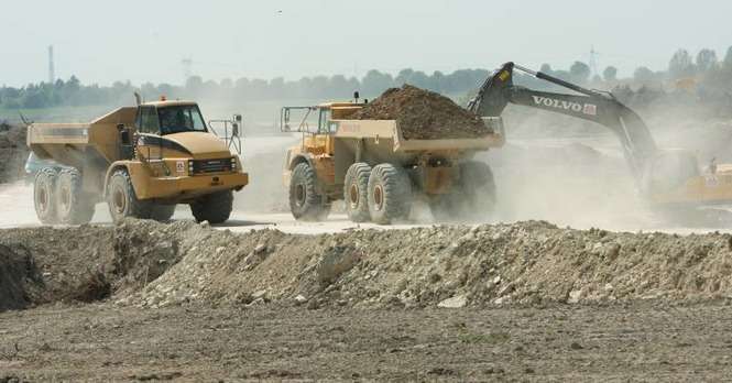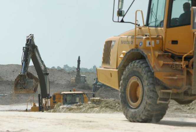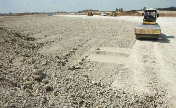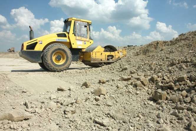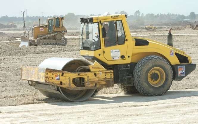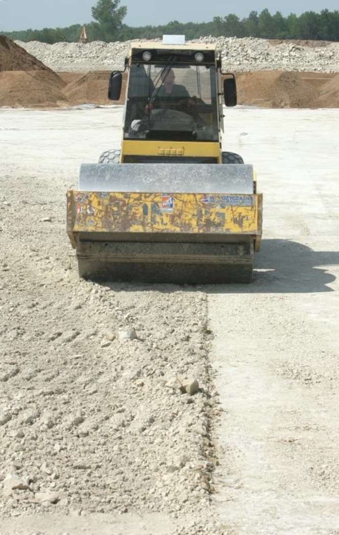 Prace budowlane na lotnisku w Świdniku. Trwa utwardzanie płyty postojowej dla samolotów. Zdjęcia: Maciej Kaczanowski