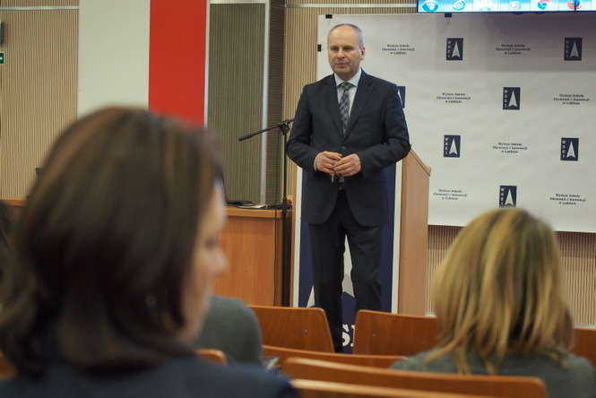 Konferencja "Samorządność uczniowska jako szkoła przyszłych liderów społecznych" odbyła się w siedzibie Wyższej Szkole Ekonomii i Innowacji w Lublinie przy ul. Projektowej 4. Fot. Maciej Kaczanowski