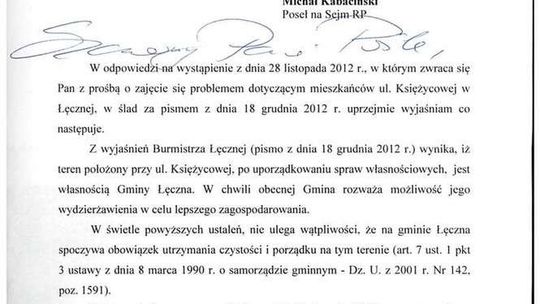 Wymiana korespondencji ws. ul. Księżycowej w Łęczenej