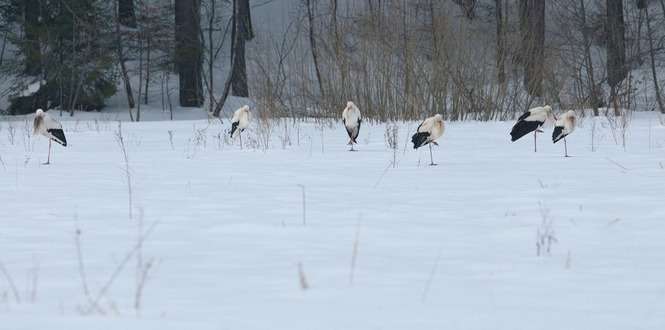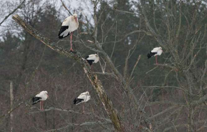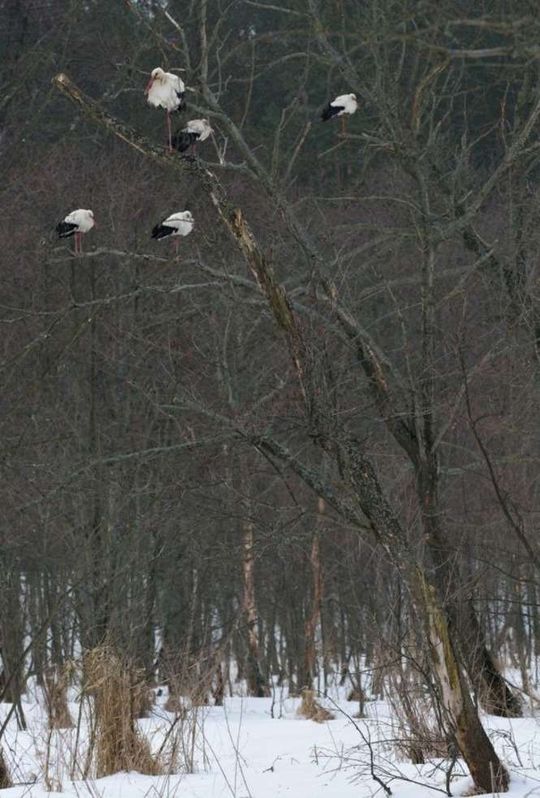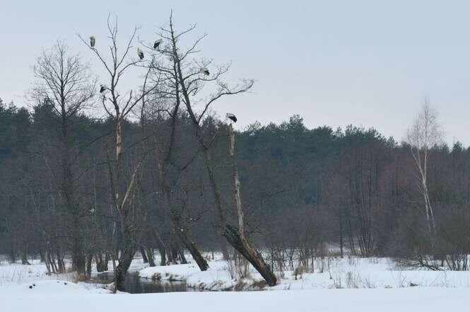 Lubelscy ornitolodzy mają również sygnały z Zamojszczyzny – m.in. z Rudki w Zwierzyńcu w okolicach rzeki Wieprz. – Na drzewach siedziało ok. 70 ptaków – zaznacza ornitolog. – Bocianów było tak dużo, że koledze, który wykonał zdjęcia nie zmieściły się w kadrze. – W Zwierzyńcu jest dużo śniegu, w niektórych miejscach nawet do pół metra. Utrzymują się też niskie temperatury powietrza. Ptaki mogą mieć więc problem ze zdobyciem pokarmu.