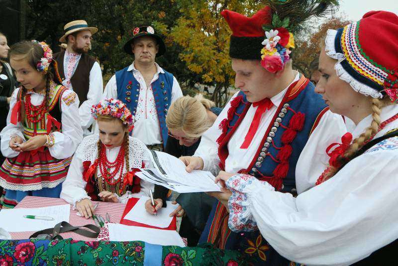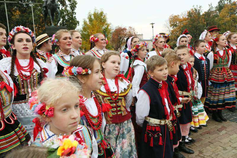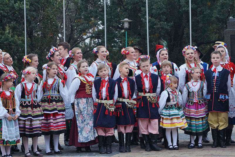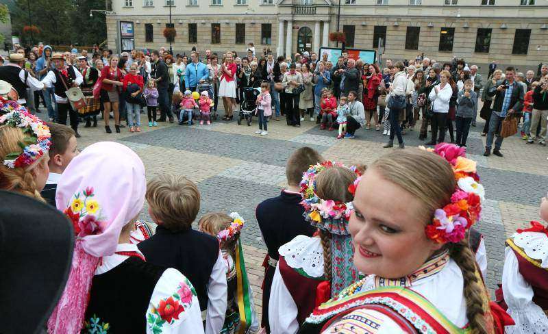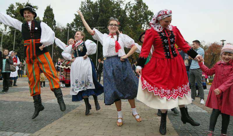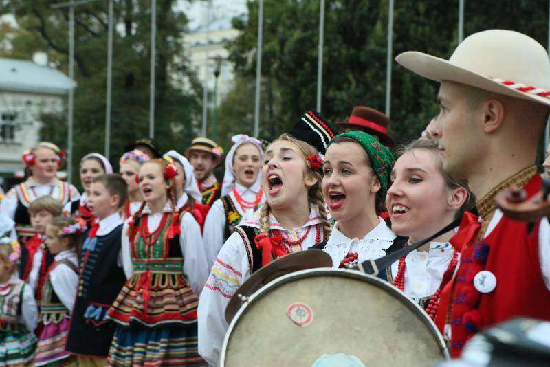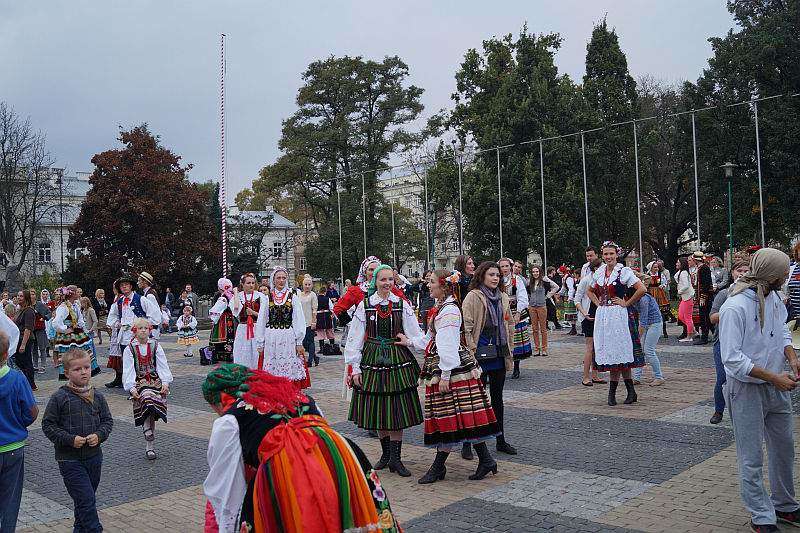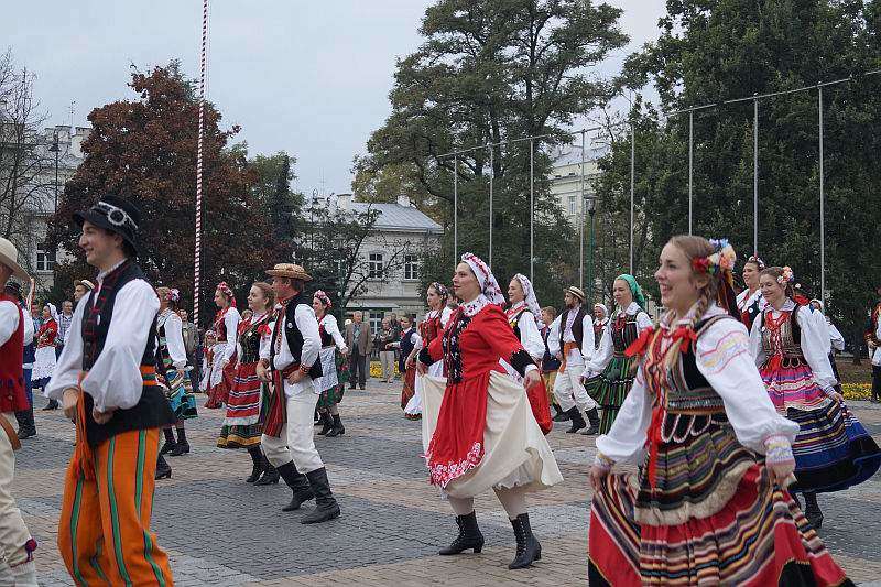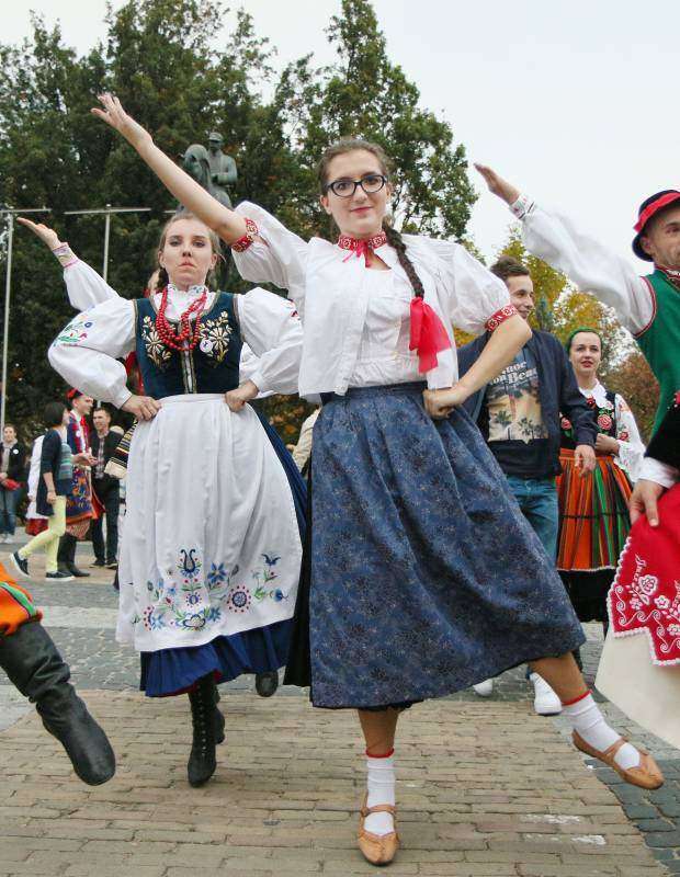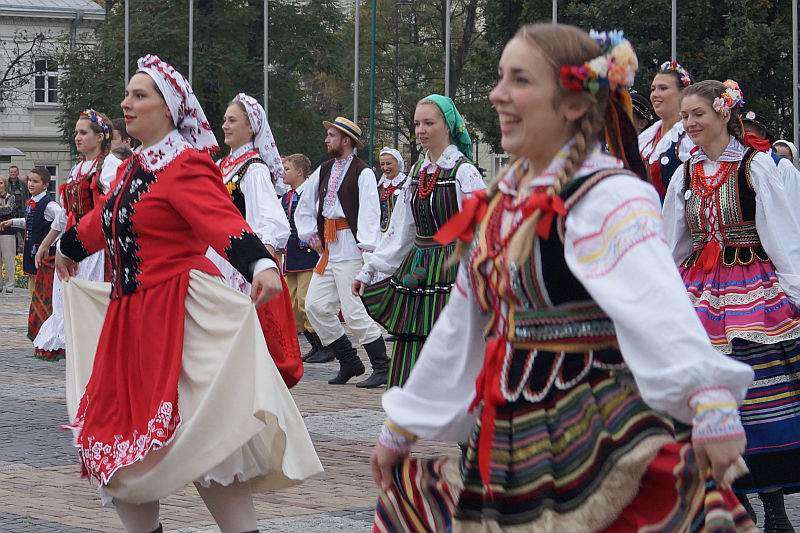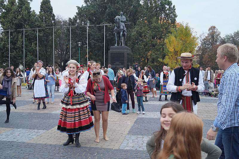 członkowie zespołów ludowych, mieszkańcy miasta i zagraniczni studenci bili rekord w liczbie osób, które w tym samym momencie wykonują hołubca. Fot. Maciej Kaczanowski