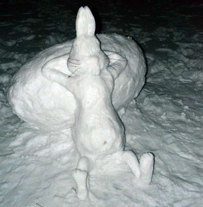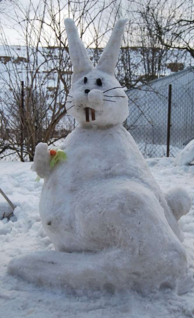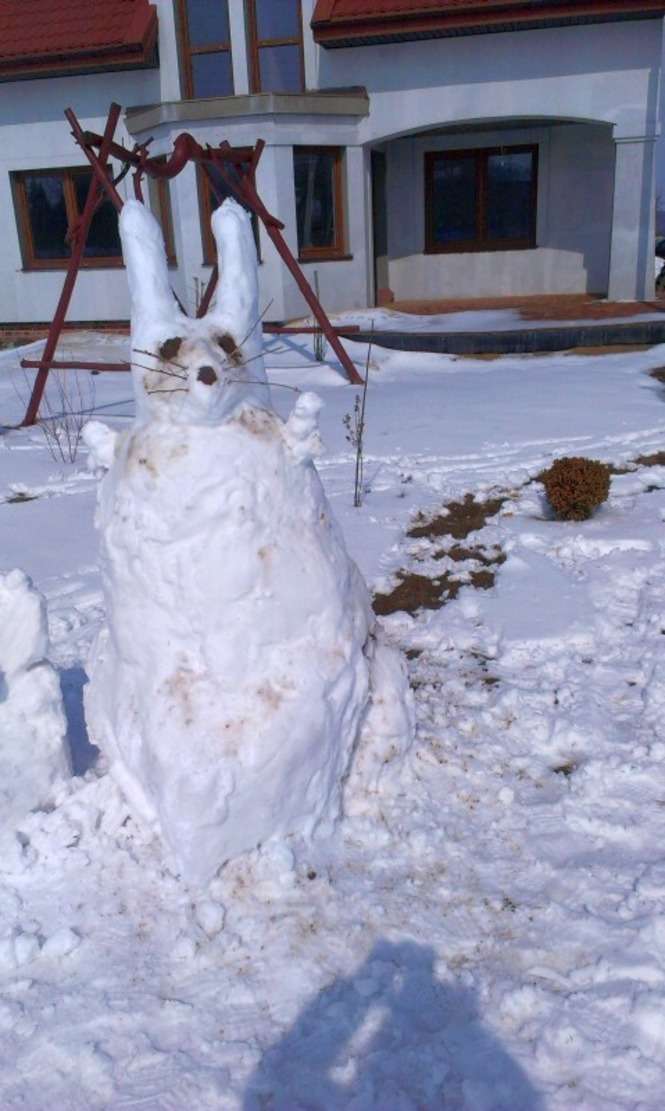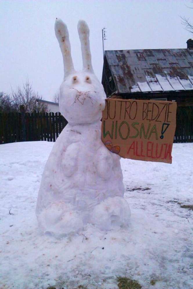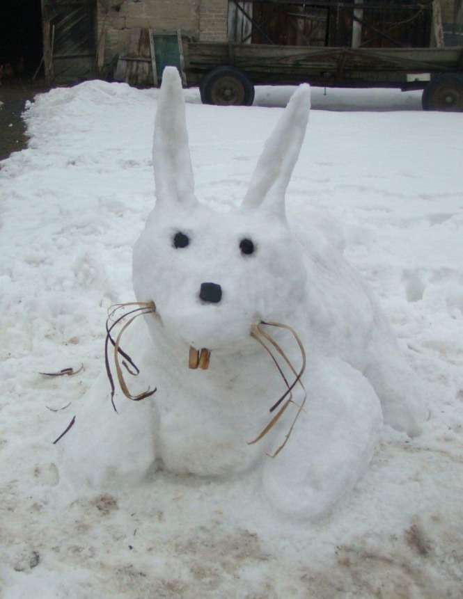Zając ze śniegu w Woli Niemieckiej