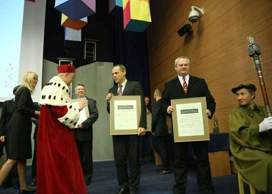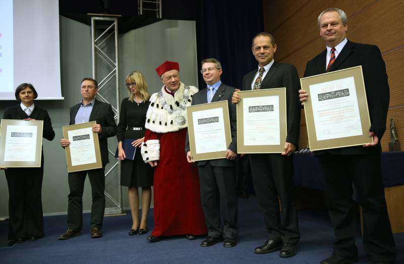 Inauguracja roku akademickiego największej lubelskiej uczelni. Uroczystość była zwieńczeniem obchodów 70-lecia UMCS. Nagrodę im. Jerzego Giedroycia za badania nad dziedzictwem paryskiej „Kultury” i twórczą kontynuację przesłania Jerzego Giedroycia w dziedzinie nauki w wysokości 25 tys. zł otrzymali: Grzegorz Motyka, Rafał Wnuk, Tomasz Stryjek i Adam F. Baran - autorzy książki „Wojna po wojnie. Antysowieckie podziemie w Europie Środkowo-Wschodniej w latach 1944 -53”. Fot. Maciej Kaczanowski