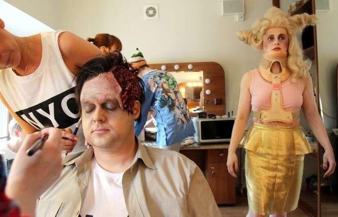 – Kilka bitew w spektaklu pokażemy – mówił na konferencji prasowej Remigiusz Brzyk, uczeń Krystiana Lupy, jeden z najzdolniejszych reżyserów młodego pokolenia.Ponieważ Teatr Osterwy tnie koszty, spektakl będzie grany przed sceną w specjalnej klatce zbudowanej z metalowych łóżek. To pozwoli nie budować dekoracji. W środku figurka Matki Boskiej, kilka mebli. Tylko ośmioro aktorów. W programie do spektaklu znajdziecie silne odwołania do „Wesela” Stanisława Wyspiańskiego. W chocholim, okrutnym tańcu zobaczycie biskupa pedofila, generała w ciemnych okularach, dresiarza, początkującą gwiazdkę telewizyjną. W najbardziej kontrowersyjnej roli biskupa – Paweł Kos. – To rzecz o polskim czyśćcu, który jednak częściej przypomina piekło niż przedsionek raju. W tym zawieszeniu między życiem a śmiercią oglądamy bohaterów szamoczących się z polskimi kompleksami i traumami. Trywialna codzienność miesza się z najważniejszymi wydarzeniami z polskiej historii XX wieku, a potoczny język z fragmentami nieoczywistej poezji – piszą realizatorzy spektaklu, nazwanego w programie bulwarówką polityczną. W reklamowych witrynach Teatru Osterwy zamiast zdjęć napisy na szarym papierze: „Nie chcę być z Lublina, chcę być klasą średnią”.